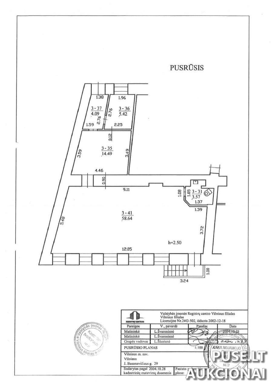 Parduodamos negyvenamosios patalpos Vilniaus miesto savivaldybėje, adresu J. Basanavičiaus g. 29-1, Vilnius. Šios 1/1 dalies patalpos, kurių bendras plotas yra 86,21 kv. m, įsikūrusios trijų aukštų mūrinio pastato pusrūsyje. Unikalus turto numeris registruose yra 1094-0119-0018:0016.