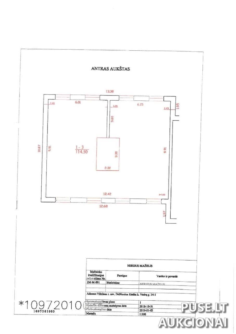 Parduodamas aukcione 235.01 kv. m. ploto butas su idealiai pritaikytu 1/1 priklausomybės daliu, esantis gyvenamajame name 1A2/b Vilniaus rajono savivaldybėje, Didžiosios Riešės kaimo teritorijoje, adresu Raudonikių g. 1.