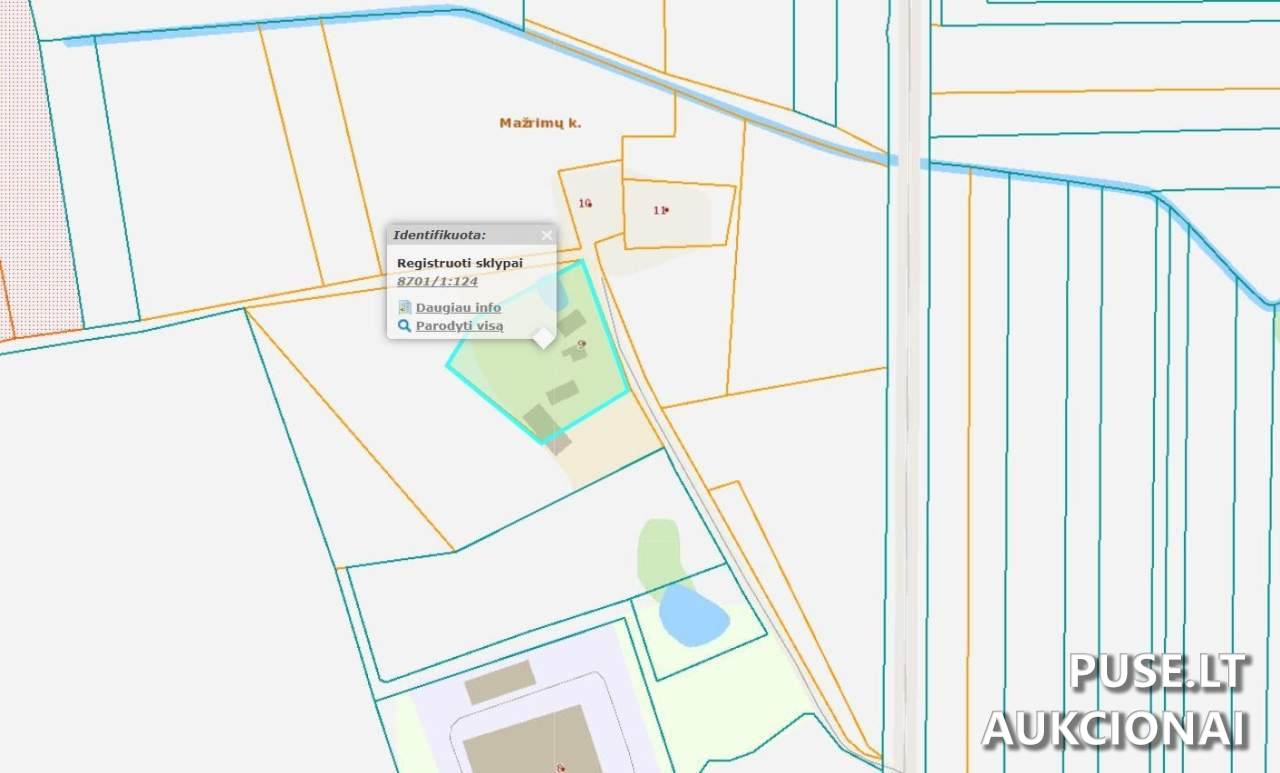 Pradinė kaina yra 8000 EUR. Sklypas parduodamas Šilalės rajono savivaldybėje, Mažrimų kaime, adresu 9.