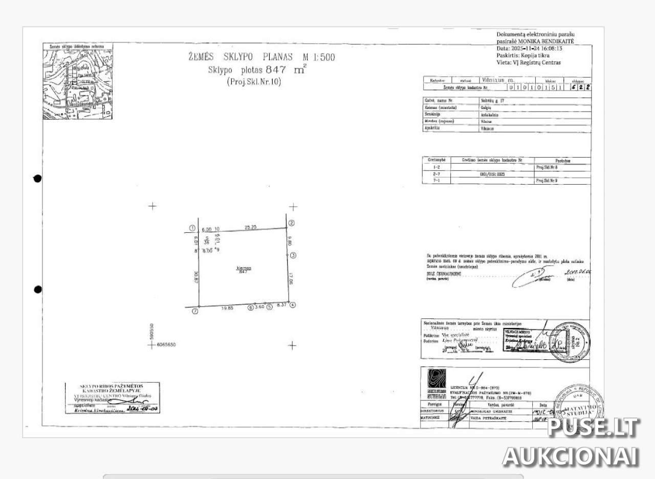 Koks yra parduodamo Vilniaus sklypo kadastro numeris?