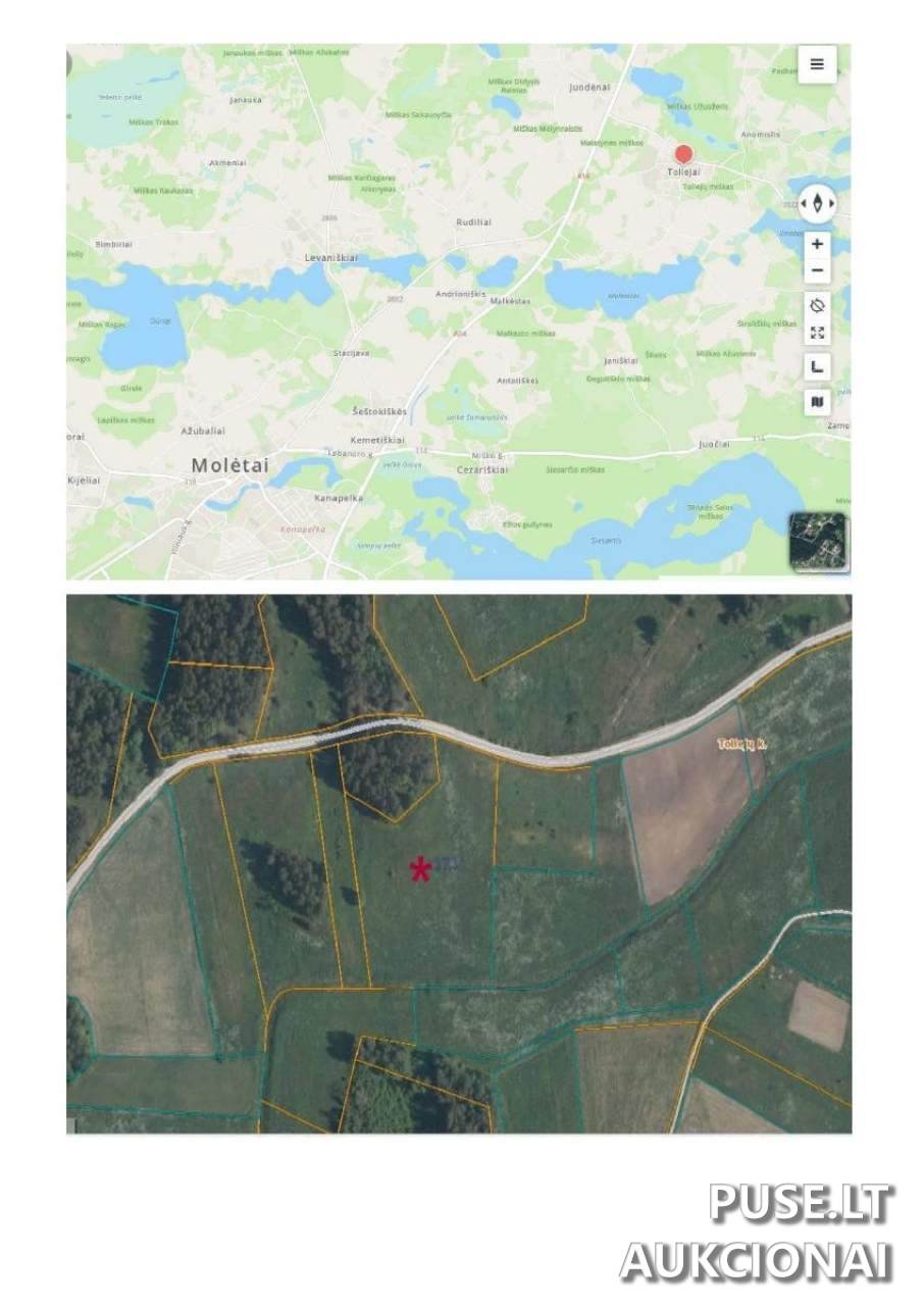 Parduodama nekilnojamojo turto dalis viešame antstolių varžytynių aukcione: 59/460 dalis 1,1500 ha ploto žemės ūkio paskirties žemės sklypo, esančio Molėtų rajono savivaldybėje, Toliejų kaime. Vertinama dalis, kuri parduodama, atitinka 0,2875 ha plotą. Unikalus objekto numeris yra 4400-0432-8589, o kadastro numeris - 6264/0001:309.