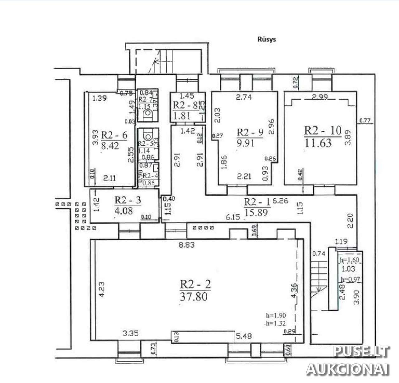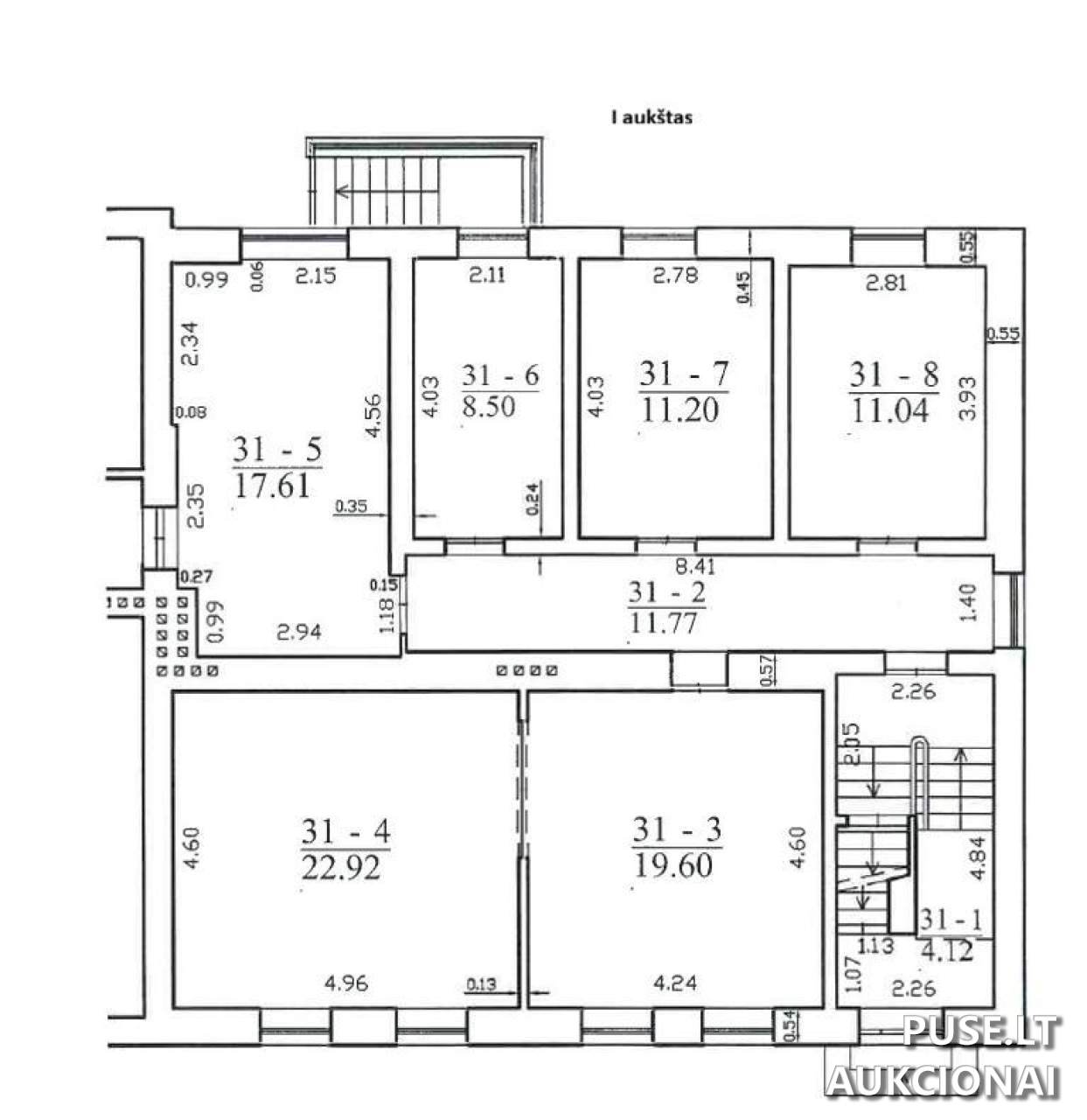Pradinė aukciono kaina yra 170910 EUR, o bendras parduodamas negyvenamosios patalpos plotas yra 199.44 kv. m.