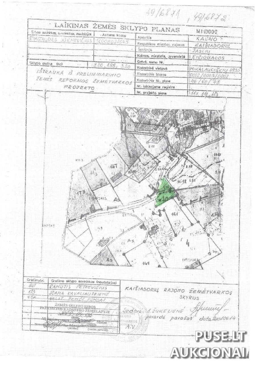 Asmenys, įsigyjantys šį sklypą, turi atitikti LR Žemės ūkio paskirties žemės įsigijimo įstatymo reikalavimus ir pateikti Nacionalinės žemės tarnybos sutikimą akto pasirašymo metu.