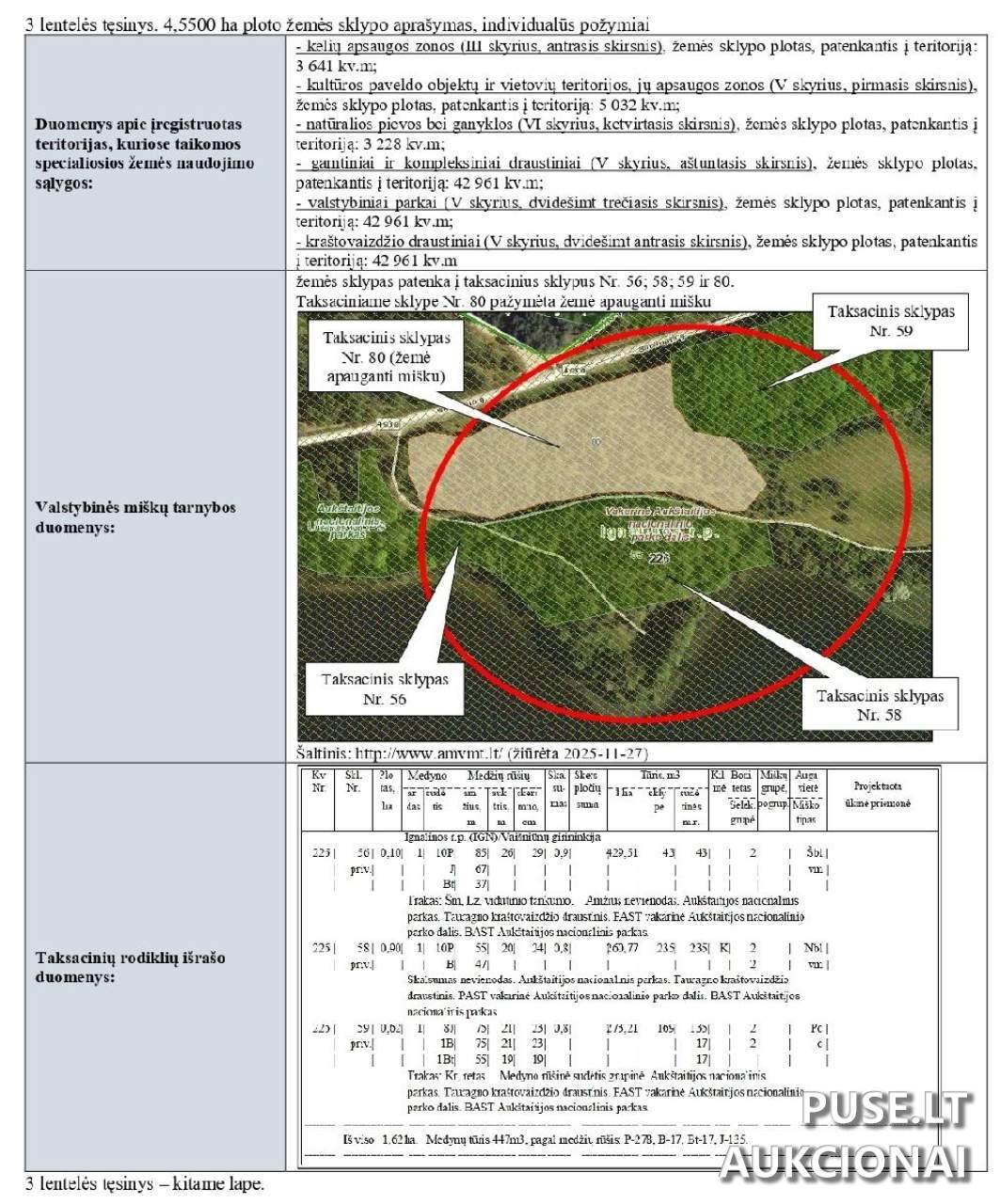 Sklypas užima 4.5500 ha, iš kurių 1.7033 ha yra įregistruotas miškas.