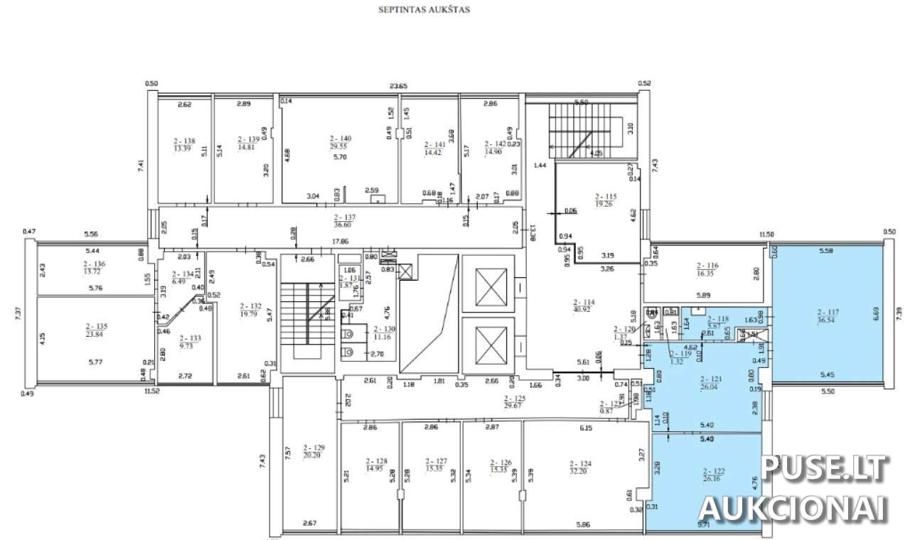 Bendras nuomojamas plotas sudaro 132,81 kv. m. Tai apima 94,61 kv. m. pagrindinių patalpų (indeksai 2-117, 2-118, 2-121, 2-122) ir bendro naudojimo patalpas.