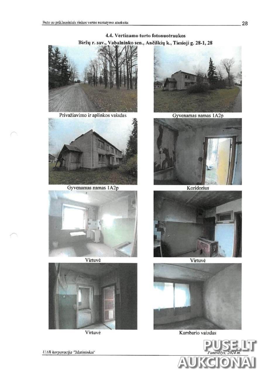 Parduodamas gyvenamosios paskirties butas Ančiškių kaime, Biržų rajono savivaldybėje, Tiesioji g. 28-1, turintis 77,14 kv. m bendro ploto. Šis 1971 metais statytas objektas yra suformuotas kaip 1/1 dalis ir yra parduodamas kaip viešas savivaldybės pakartotinis aukcionas. Buto patalpos yra išsidėsčiusios pirmame ir antrame aukštuose. Komunalinės paslaugos apima vietinį vandentiekį ir kanalizaciją, taip pat vietinį centrinį šildymą. Būklė yra apibūdinama kaip labai bloga ir remontuotina, todėl tai yra puiki proga investuoti į ilgalaikį projektą kaimo vietovėje su nedideliu įėjimo kaštu.