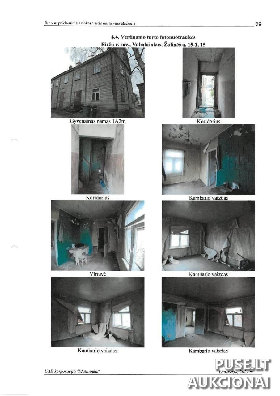 Parduodamas 31,03 kv. m ploto gyvenamosios paskirties butas Biržų rajono savivaldybėje, Vabalninko mieste, Žolinės a. 15-1, unikalus Nr. 4400-0831-2310:2642. Šis dalinės nuosavybės objektas (1/1 dalis) yra parduodamas pakartotinio aukciono būdu, pradinė kaina siekia vos 365 EUR.