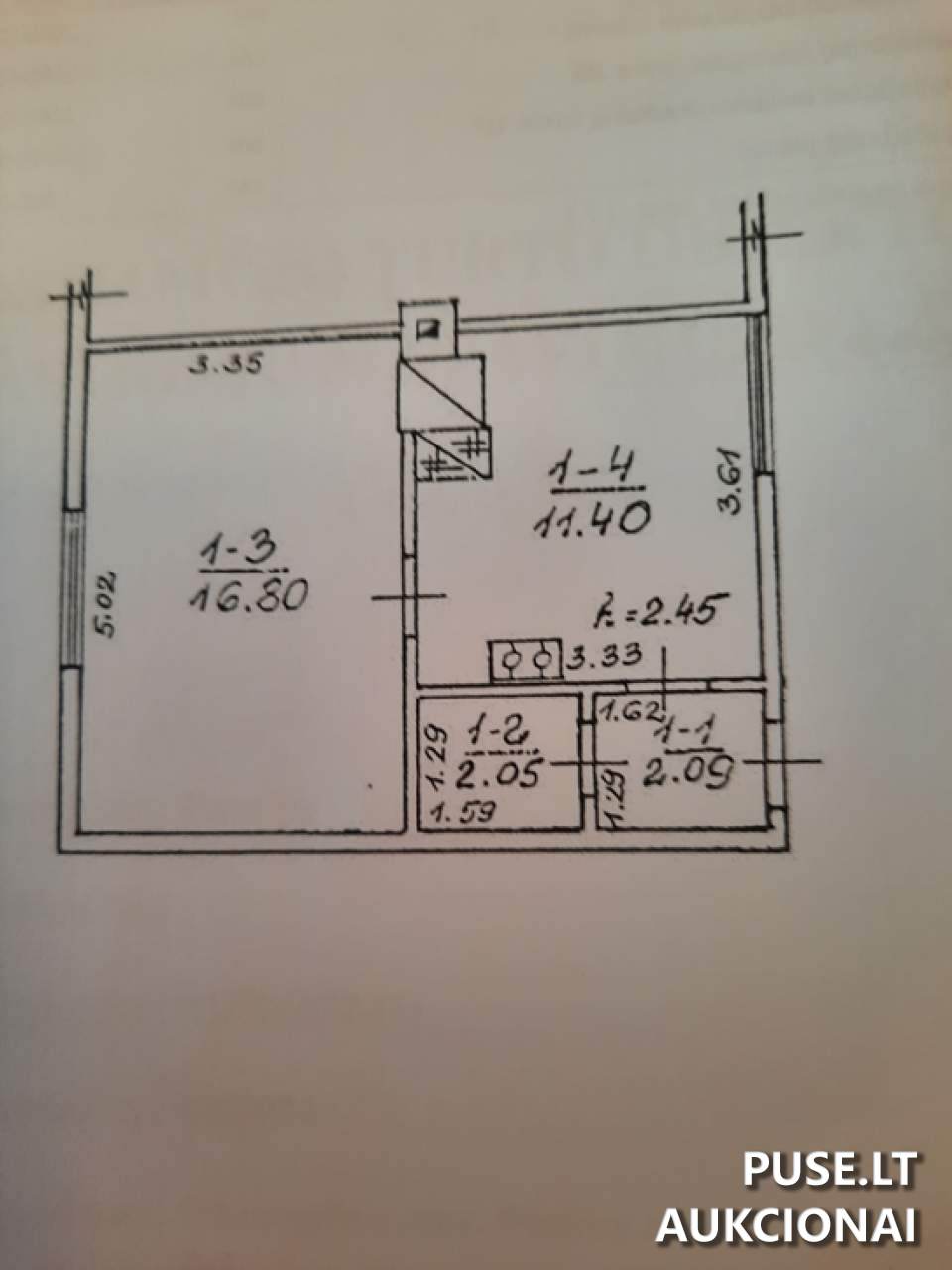 Tai 1 kambario butas (32,34 kv. m) mediniu karkasu name su krosniniu šildymu ir elektra. Namas stovi ant valstybinės žemės.