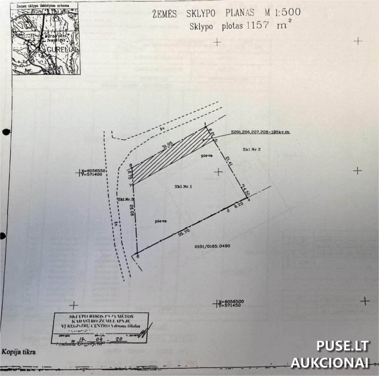 Koks yra parduodamo žemės sklypo adresas ir kadastrinių numerių duomenys?
