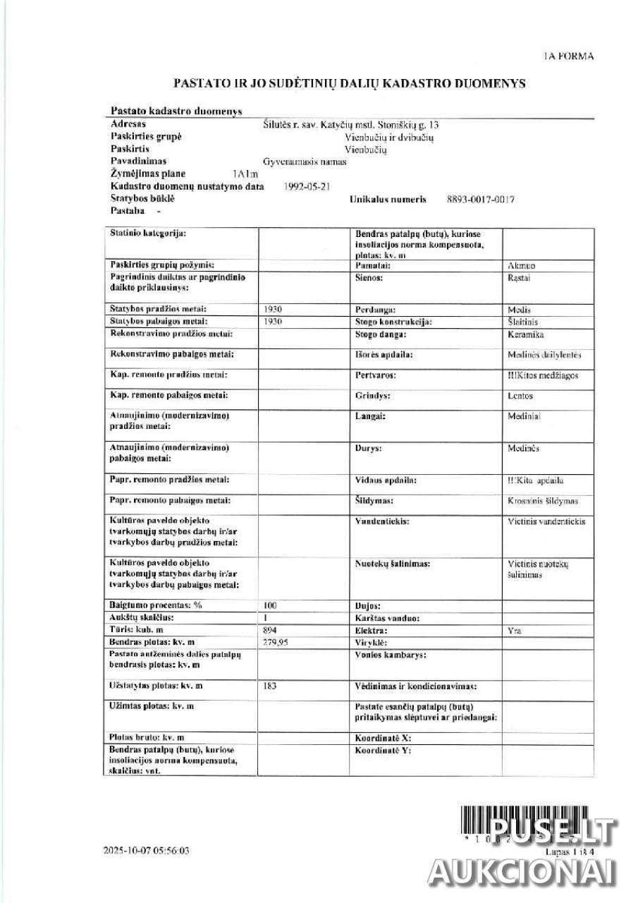 Objektą galima apžiūrėti vietoje, adresu Stoniškių g. 13, Katyčiai, Šilutės r. sav.