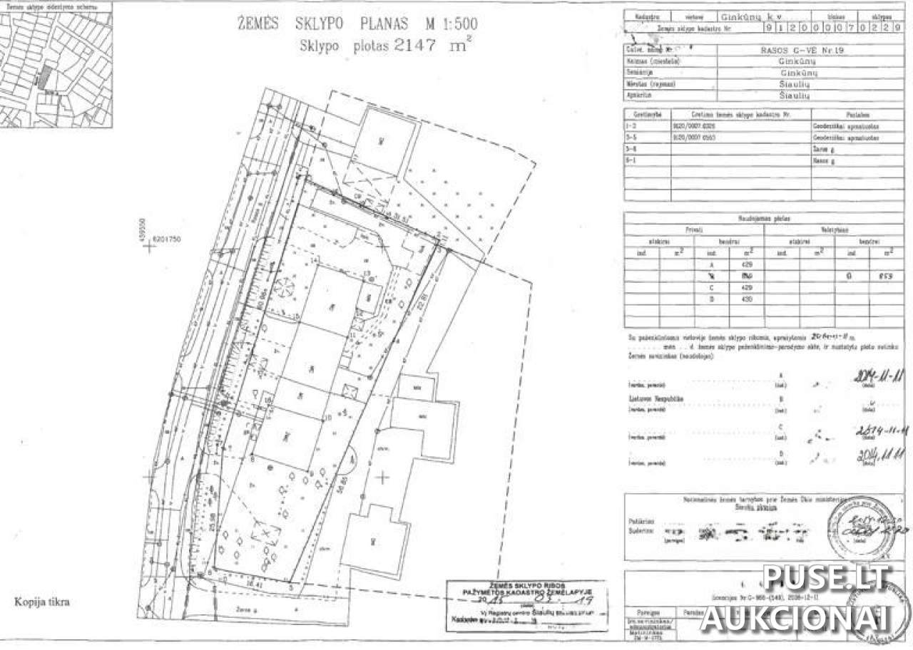 Prie buto priklauso 0,0430 ha dalis iš bendro 0,2147 ha žemės sklypo, kuriam nustatyta naudojimosi tvarka (2010 m. sutartys).