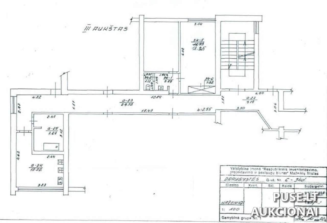 Parduodamas 1/1 dalies nuosavybės teisėmis priklausantis nekilnojamasis turtas Mažeikių mieste, adresu Draugystės g. 6-34D, kurio bendras plotas sudaro 18,25 kv. m. Kaina pradedama nuo 6363 EUR. Turtas apima pagrindines patalpas bei kelias papildomas patalpas (sandėliukai) su bendrais plotais: a-1 (1,44 kv. m), a-2 (0,59 kv. m), a-23 (3,71 kv. m), a-24 (1,60 kv. m), a-25 (0,95 kv. m) ir a-27 (0,49 kv. m).