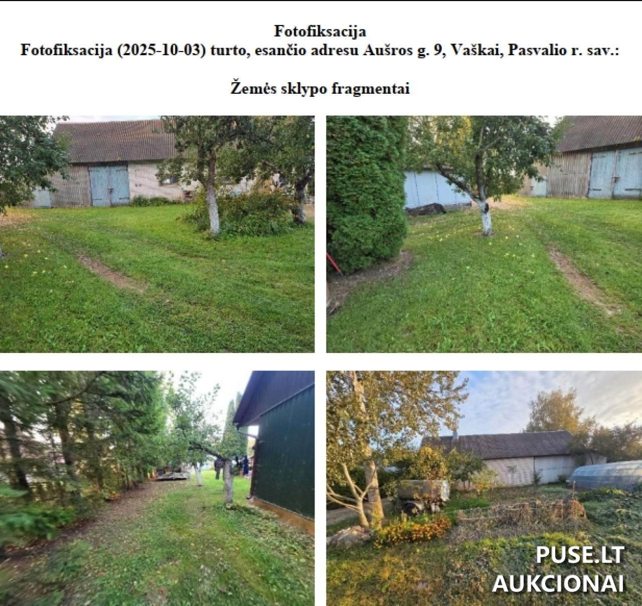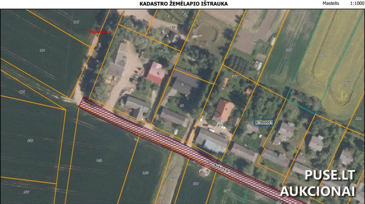 Parduodamas 0.1500 ha ploto žemės ūkio paskirties žemės sklypas Pasvalio rajono savivaldybėje, Vaškų miestelyje, Aušros g. 9. Šis unikalus daiktas, turintis kadastro numerį 6780/0001:46 ir unikalų numerį 6780-0001-0046, yra parduodamas nuo 2026 m. sausio 30 d. ir aukcionas baigiasi 2026 m. kovo 2 d. Pradinė kaina nustatyta 17400 EUR. Tai 1/1 dalies pardavimas. Sklypo pagrindinė naudojimo paskirtis yra Žemės ūkio paskirtis, o bendras našumo balas yra 54.1, kas rodo jo potencialą agrariniams darbams. Iš viso turimo 0.1500 ha ploto, 0.1000 ha yra žemės ūkio naudmenos, iš kurių 0.0400 ha sudaro ariama žemė ir 0.0600 ha - sodų plotas. Taip pat nurodyta, kad 0.0500 ha užstatyta teritorija ir 0.1500 ha nusausintos žemės plotas. Matavimai atlikti preliminariai, suformuojant žemės sklypą. Svarbi sąlyga – norint įsigyti šį žemės sklypą, varžytynių laimėtojas privalo gauti Nacionalinės žemės tarnybos sutikimą ir jį pateikti antstoliui iki turto pardavimo akto surašymo. Šiuo metu turtui yra taikomas areštas. Organizatorius - Antstolio R.Kudrausko kontora.