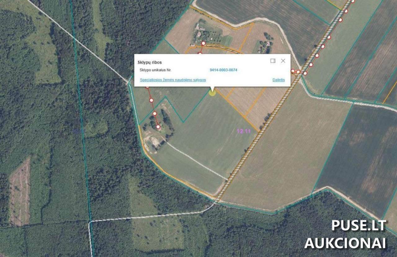 Sklypo kadastro numeris yra 9414/0003:74, o bendras plotas siekia 12,2400 hektaro.