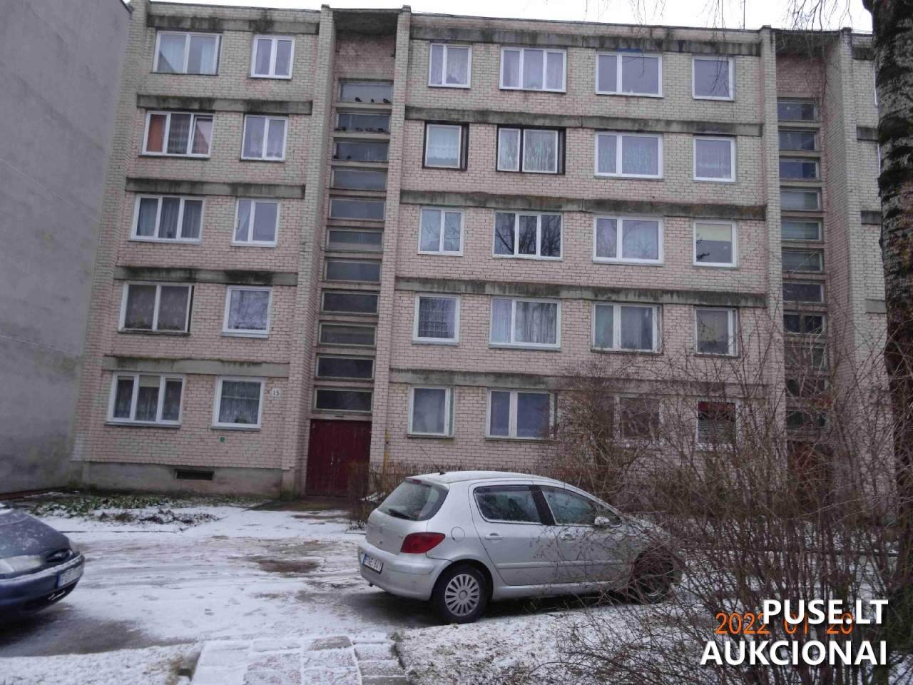 Parduodama 1/2 turto dalis 3 kambarių bute, esančiame Naujosios Akmenės mieste, V. Kudirkos g. 15-6, parduodama vykstančiose antstolių varžytynėse. Būsto bendras plotas yra 58.63 kv. m, naudingas plotas 58.63 kv. m, o gyvenamasis plotas siekia 43.96 kv. m. Butas yra 1969 metais statytame pastate, esantis 3-čiame aukšte. Pastato baigtumo procentas yra 100 %.