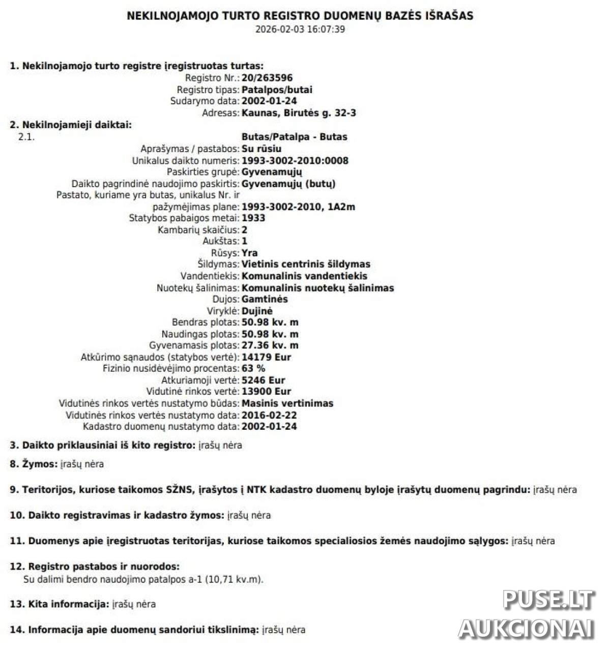 Kokia parduodamo buto adresas ir pagrindinis plotas, parduodamas aukcione?
