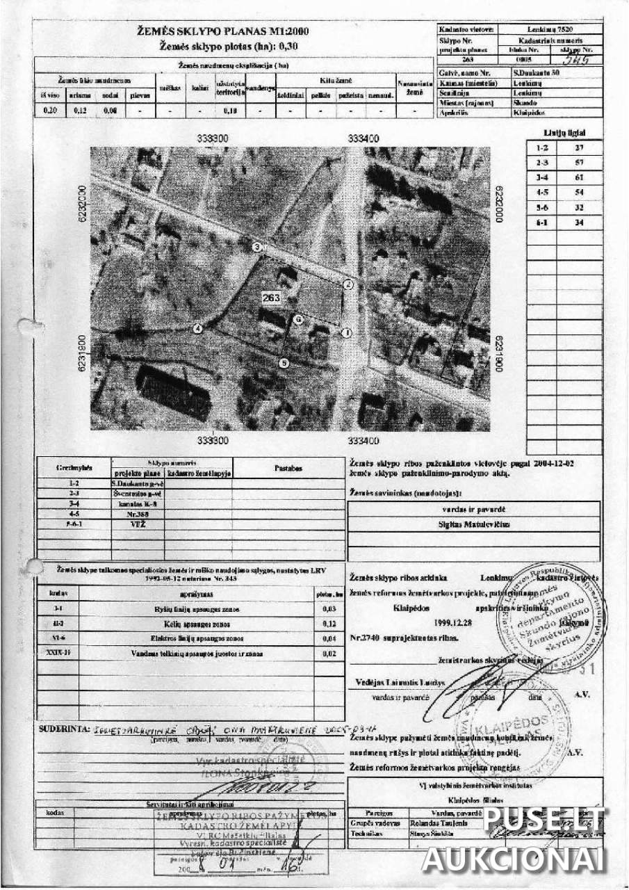 Parduodama 1/2 dalis žemės sklypo Skuodo rajono savivaldybėje, Lenkimų miestelyje, S. Daukanto g. 30. Tai 0.3000 ha ploto sklypas, kurio pagrindinė naudojimo paskirtis yra Kita, o žemės sklypo naudojimo būdas priskiriamas Gyvenamosios teritorijos. Naudojimo pobūdis numato Mažaaukščių gyvenamųjų namų statybą, kas suteikia aiškias perspektyvas vystymui. Pradinė šio turto kaina yra 8000 EUR.