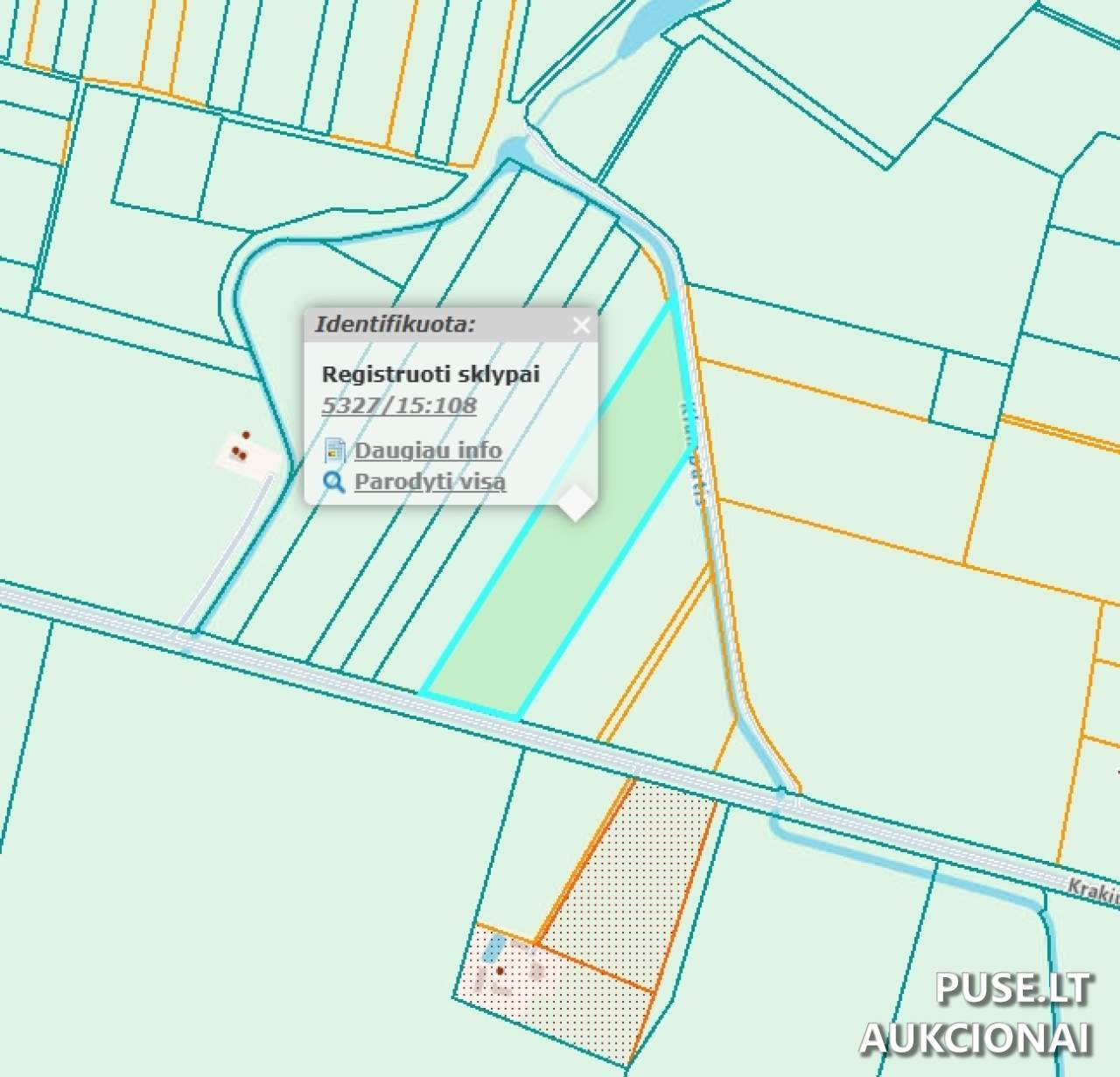 Parduodamas 2,2500 ha žemės ūkio paskirties sklypas, iš kurio 2,2000 ha yra ariama žemė, o 0,0500 ha yra vandens telkinys.