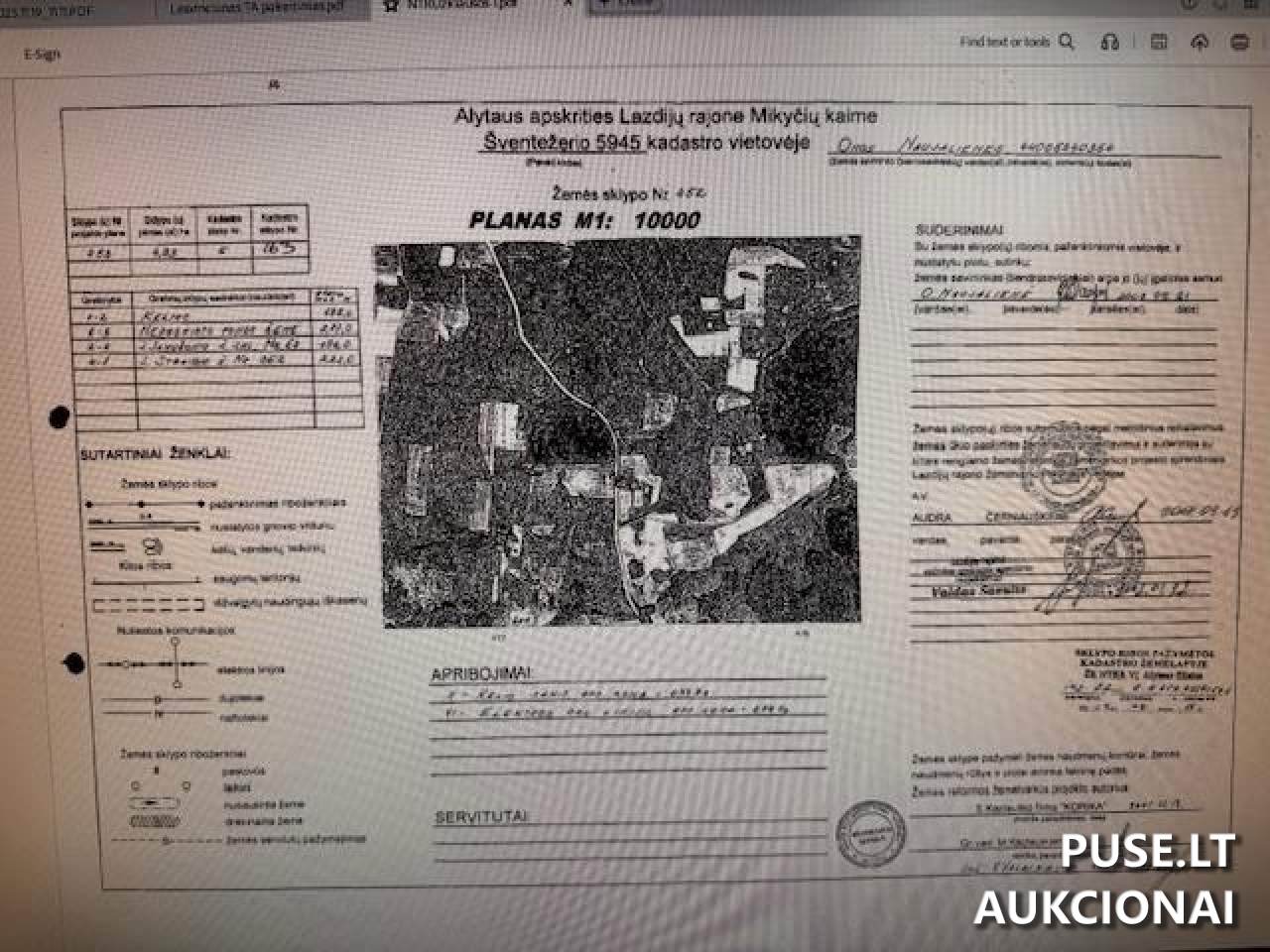 Parduodama 1/2 dalis žemės sklypo, kurio bendras plotas yra 4,93 ha (49300 kv.m.) Mikyčių kaime, Lazdijų r. sav.