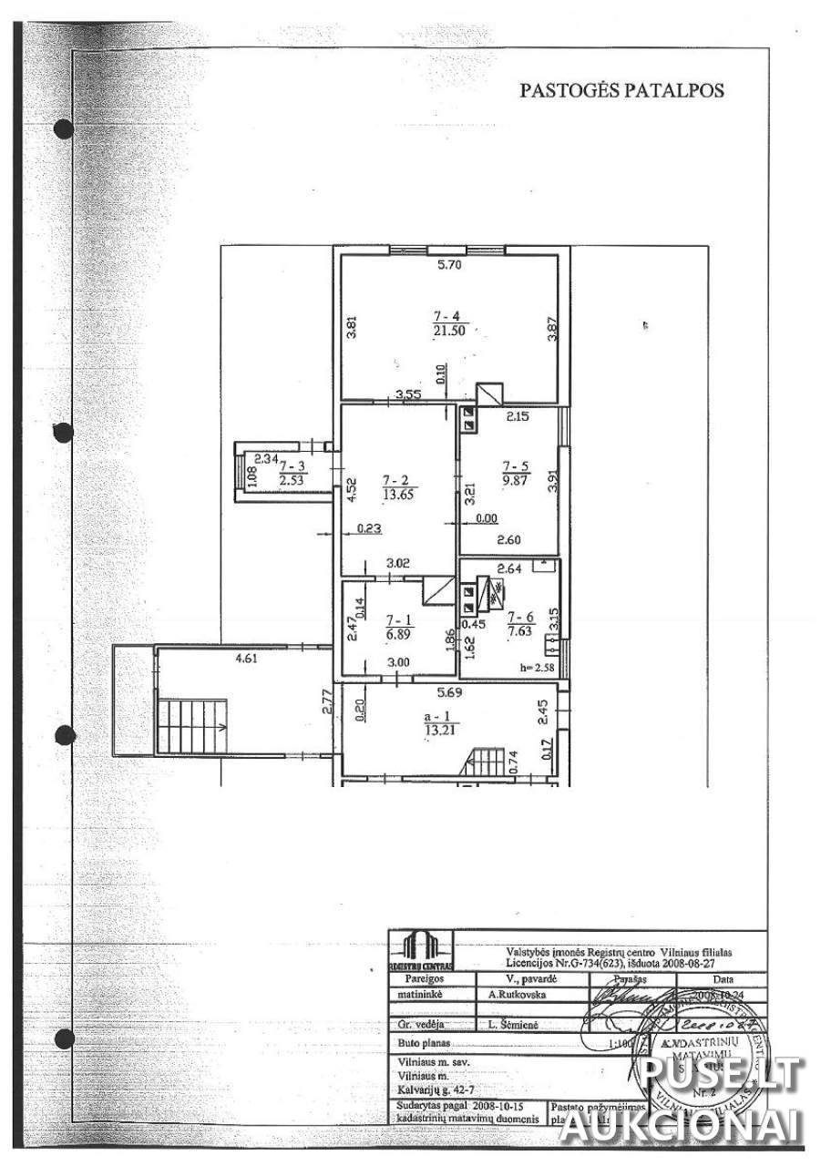 Parduodamas 1/1 dalinės nuosavybės teisės butas Vilniaus miesto savivaldybėje, esantis Kalvarijų g. 42-7, Vilniuje. Šis nekilnojamasis turtas pasižymi 62,07 kv. m. bendruoju plotu, papildomai priskiriant 6,61 kv. m. bendrojo naudojimo patalpų dalį. Butas yra vieno aukšto medinio pastato mansardoje. Objekto unikalus kodas - 1094-0145-4014:0008.