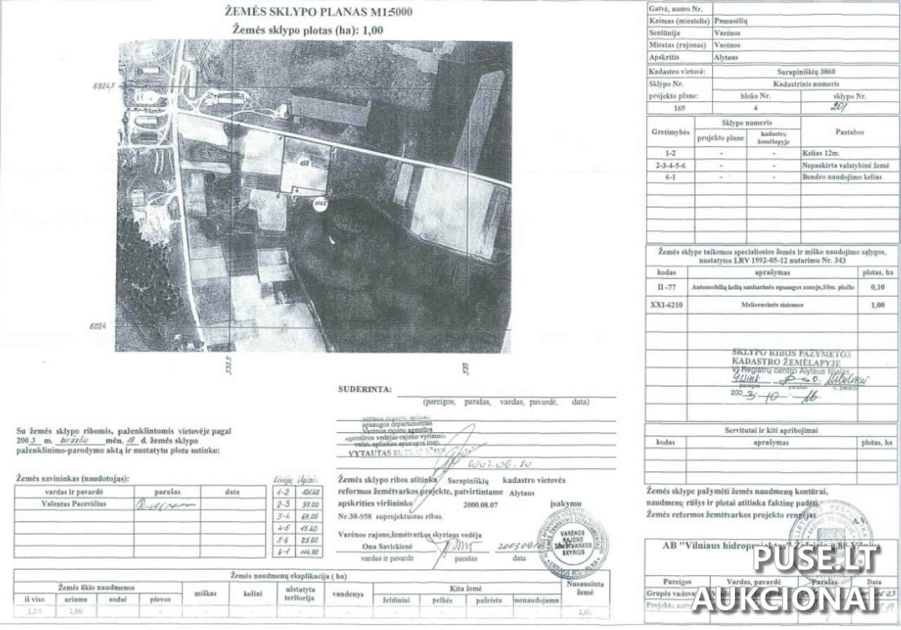 Kokios paskirties ir žemės našumo balas yra parduodamas 1.0000 ha sklypas Varėnos rajone?
