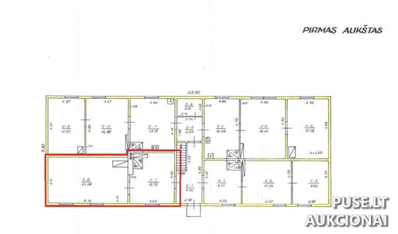 Pardavimas vyksta esamos fizinės ir funkcinės būklės. Svarbu atkreipti dėmesį, kad bute yra įrengtos papildomos pertvaros, o patalpoje 1-1 yra įrengtas papildomas įėjimas į gretimo buto patalpą (2-1). Šie pakitimai nėra užfiksuoti Nekilnojamojo turto kadastro duomenyse. Organizatorius VĮ Turto bankas neįsipareigoja iškraustyti jame esančių daiktų.
