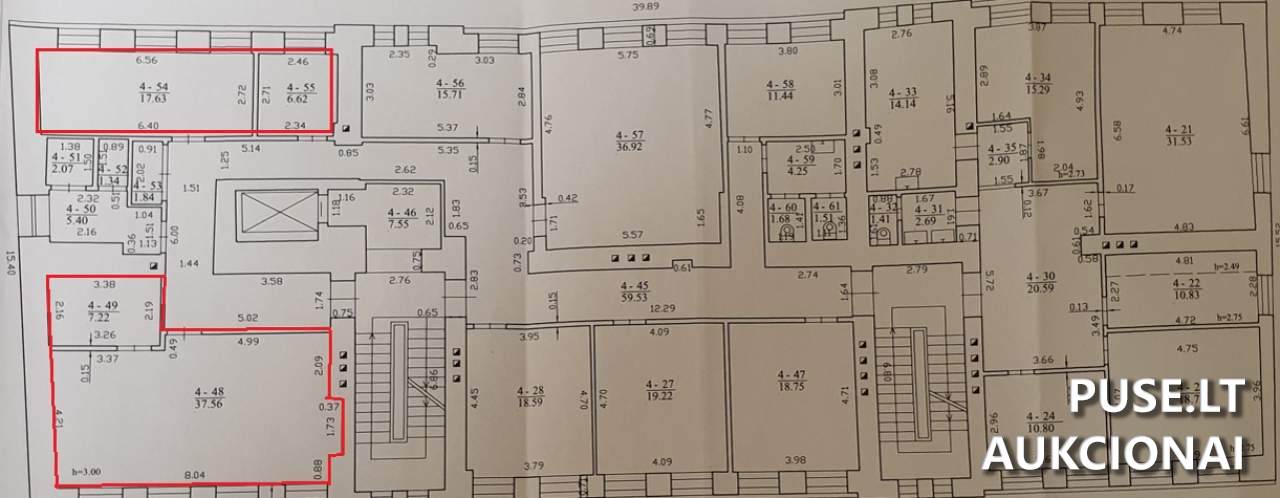 Bendras nuomojamas plotas yra 99.63 kv. m. Patalpos yra ketvirtame pastato aukšte (indeksai 4-48, 4-49, 4-54, 4-55).