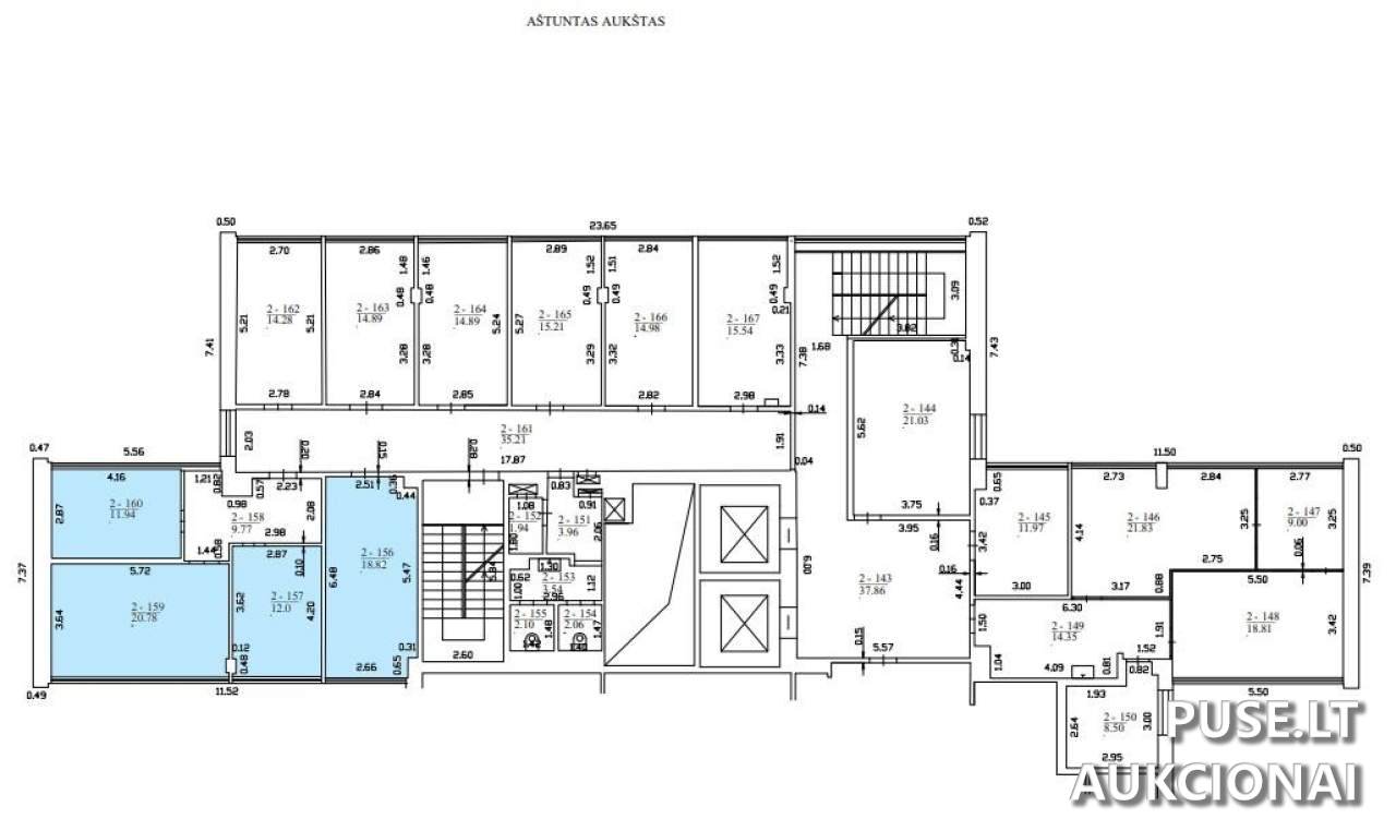 Visas nuomojamas plotas yra 87,93 kv. m, įskaitant dalį bendrojo naudojimo patalpų. Konkretūs indeksai yra 2-156, 2-157, 2-159, 2-160 (63,54 kv. m).