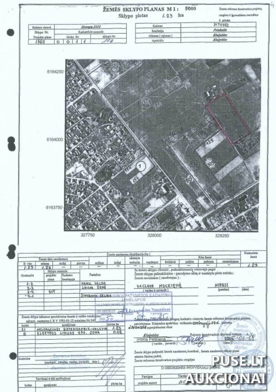 Parduodamas pirmosios pakartotinės aukciono procedūros metu VĮ Antstolių varžytynėse – 1.2003 hektaro žemės ūkio paskirties sklypas, esantis Klaipėdos rajono savivaldybėje, Dituvos seniūnijoje (Stragnų k.v.). Pradinė šio turto pardavimo kaina yra 5008 EUR. Sklypo pagrindinė naudojimo paskirtis yra žemės ūkio, o naudojimo būdas nustatytas kaip kiti žemės ūkio paskirties žemės sklypai. Nuosavybės dalis yra 1/1.