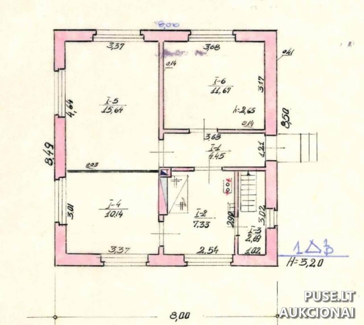 Gyvenamojo namo pradinė kaina aukcione yra 31200 EUR.