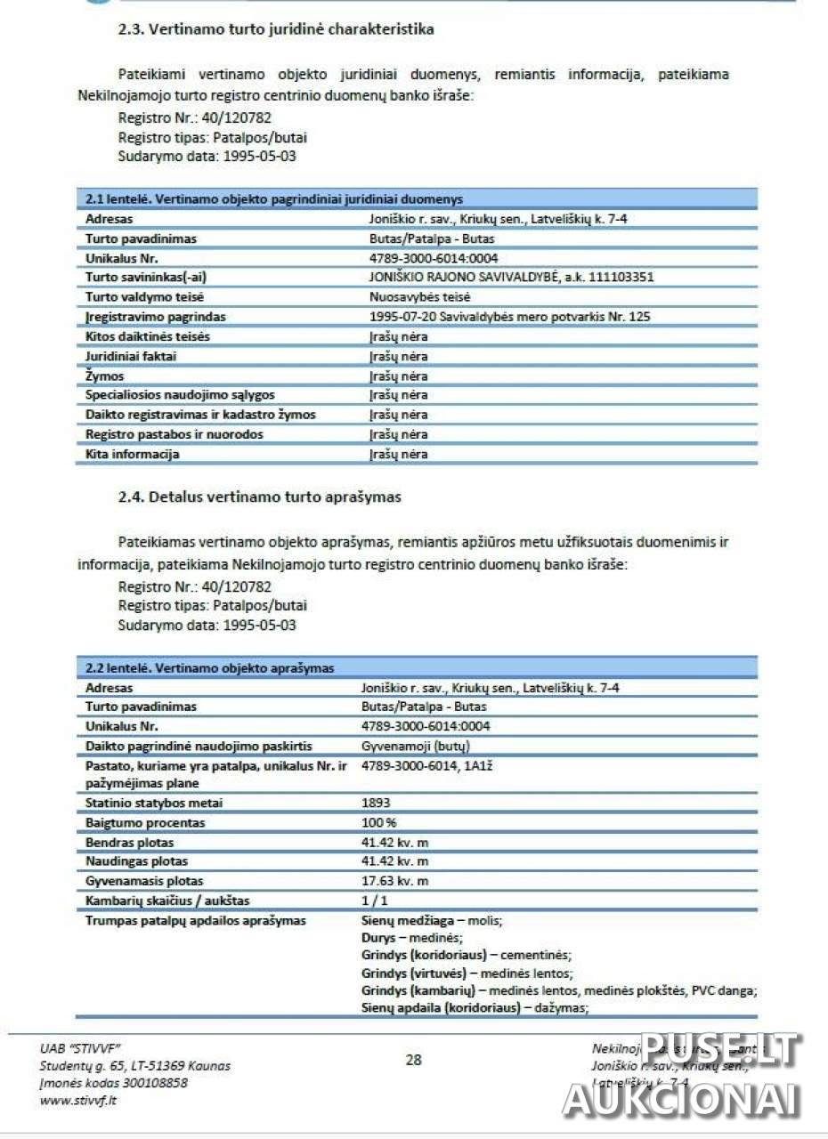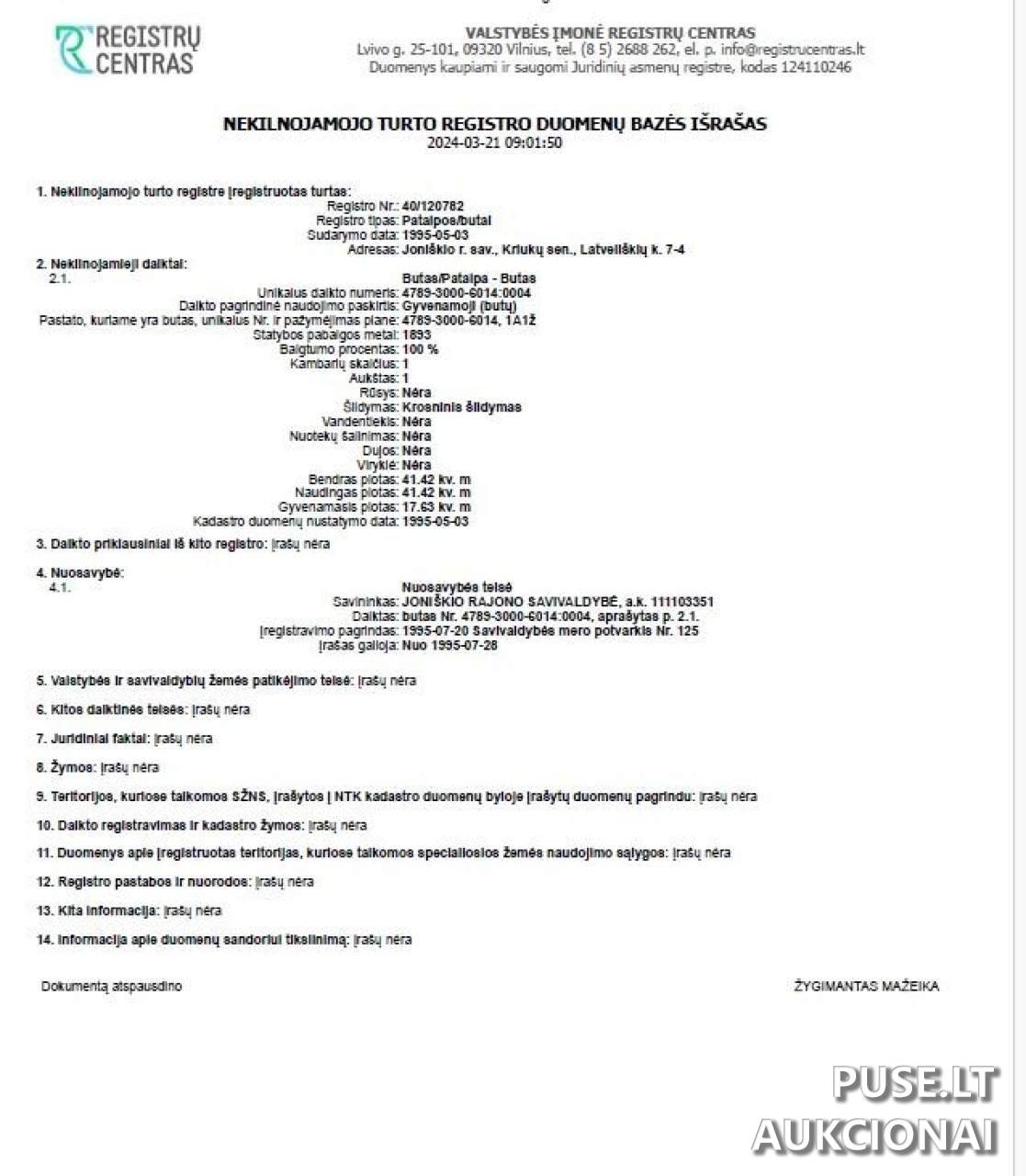 Nekilnojamojo turto unikalus Nr. yra 4789-3000-6014:0004, o bendras plotas yra 42,09 kv. m.