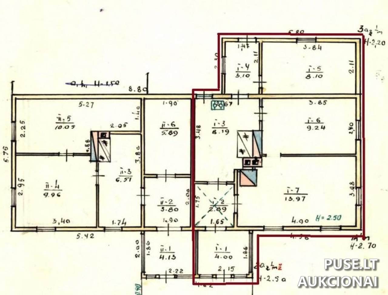 Be to, objekte yra neregistruotas nesudėtingas statinys (pavėsinė). Parduodamos dalies (1/4 pastato) faktinis naudojimas plane gali būti pažymėtas indeksu I.