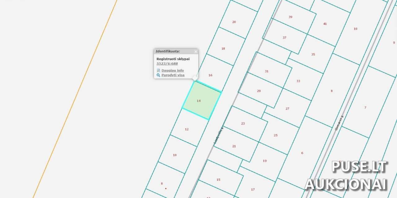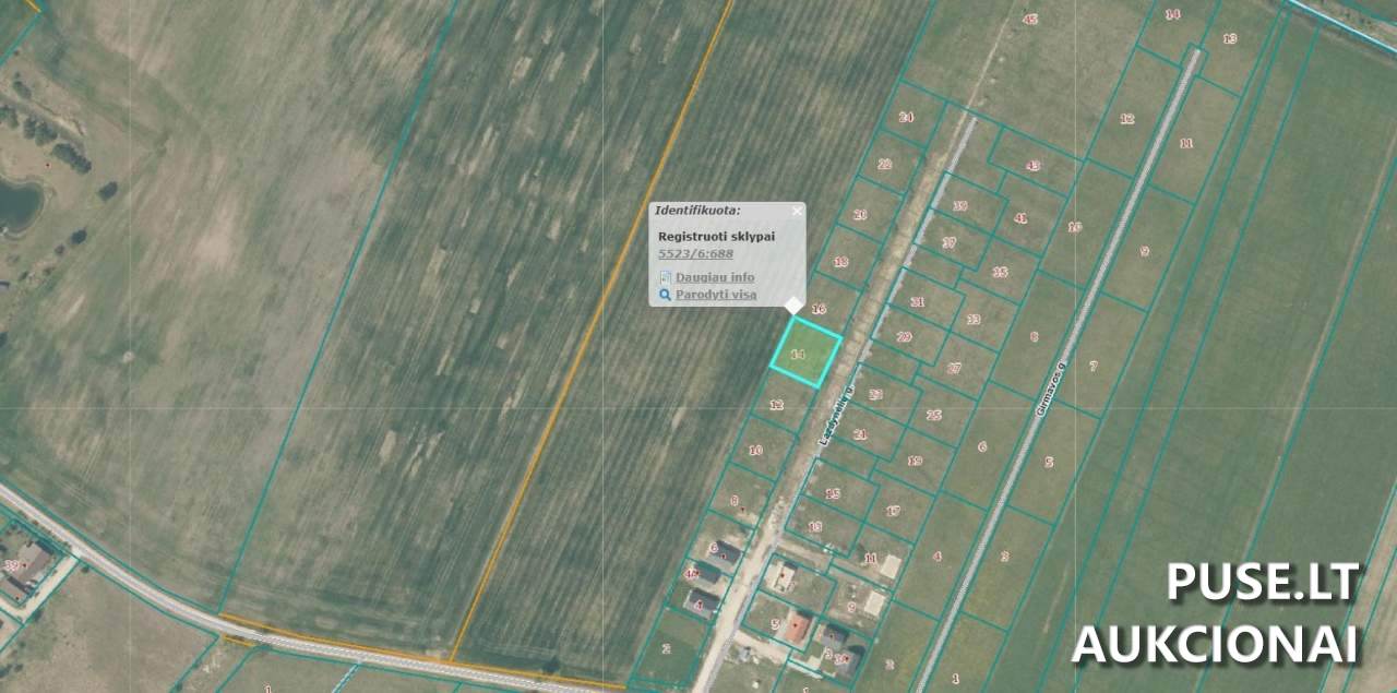 Kadastro numeris: 5523/0006:688, Unikalus Nr.: 4400-4146-1625. Sklypas suformuotas atliekant kadastrinius matavimus, kas užtikrina tikslias ribas ir paruoštumą statyboms ar nuosavybės registracijai.