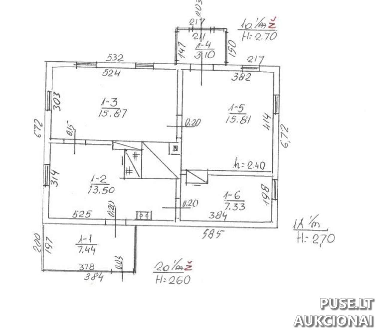Parduodama 1/3 dalis gyvenamojo namo, kurio bendras plotas 63.05 kv. m.