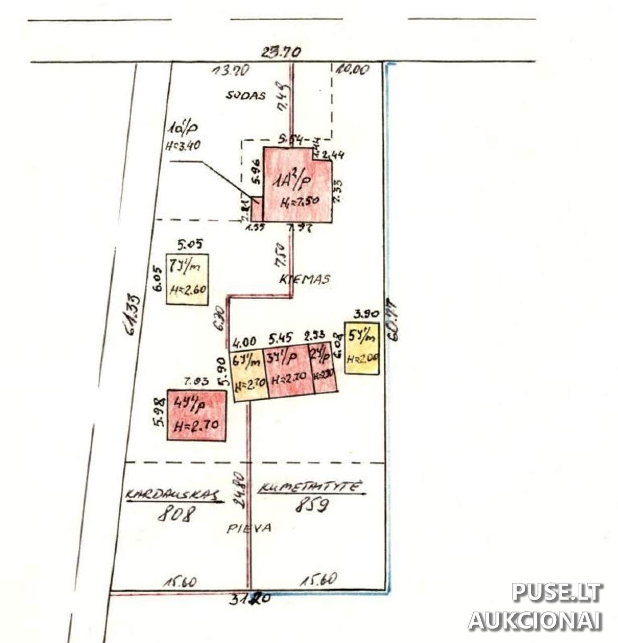 Kokia yra 1/2 dalies buto ir priklausinių pradinė kaina aukcione?