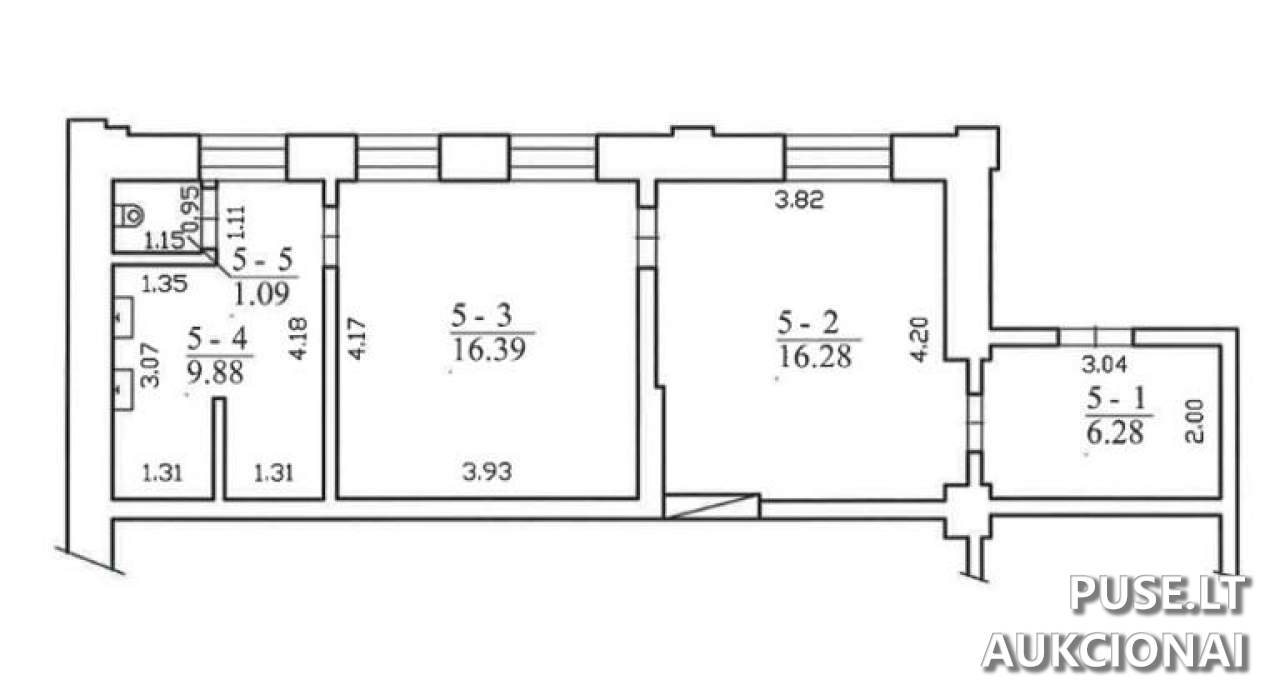 Bendra patalpų ploto dalis, parduodama 1/1 nuosavybės teise, siekia 49.92 kvadratinius metrus. Apžiūrint turtą vietoje nustatyta, kad patalpoje 5-1 yra iškirstos dvi angos ir įstatyti langai. VĮ Turto bankas neturi informacijos apie rekonstrukcijos eigą ir ar ji vyko pagal galiojusius teisės aktus. Prieš dalyvaujant aukcione, potencialiam pirkėjui rekomenduojama atlikti turto apžiūrą vietoje, įvertinti visas su tokios būklės pirkimu susijusias teisines bei ekonomines rizikas, ir nustatyti galimus įrengimo kaštus.