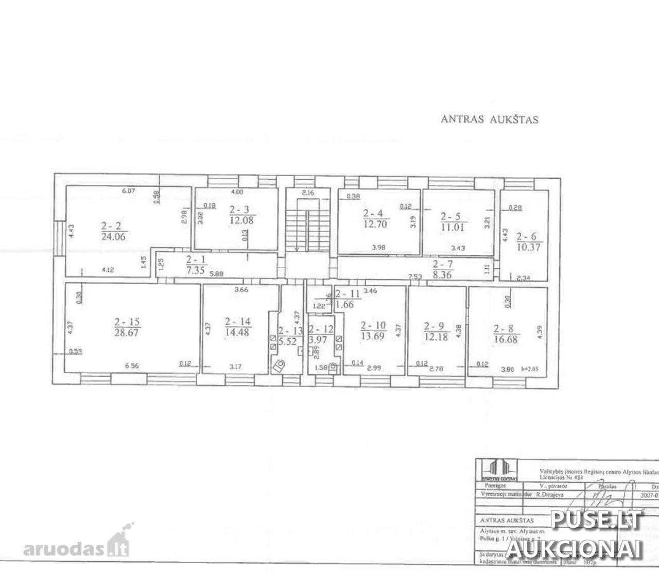 Alytaus miesto savivaldybės administracija skelbia viešą nuomos konkursą 17,24 kv. m ploto negyvenamųjų patalpų nuomai Alytuje, adresu Pulko g. 1. Šis turtas, esantis pastate su unikaliu numeriu 1195-8002-1018, yra skirtas administracinei veiklai.