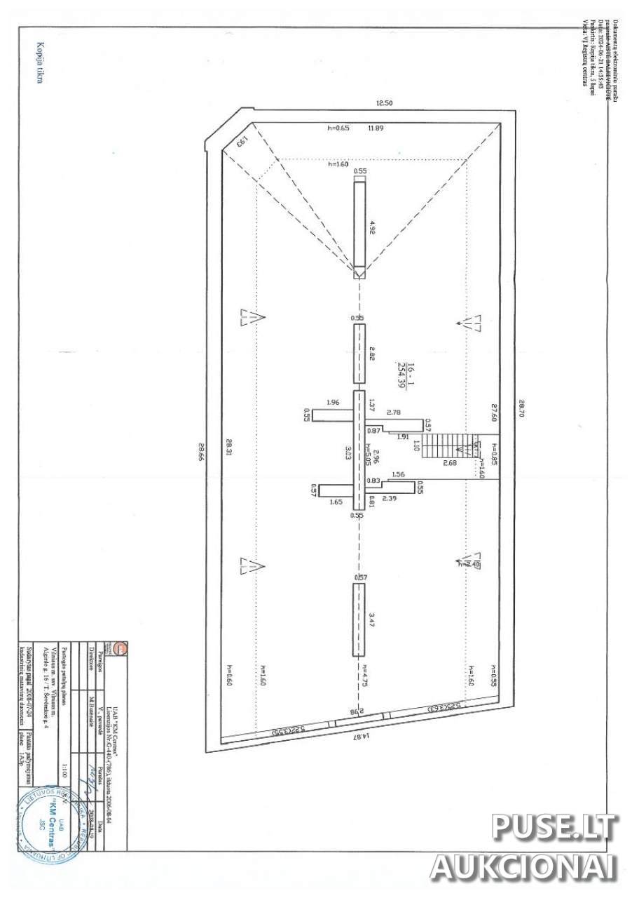 Parduodama 909/10000 dalis neįrengtos pastogės (unikalus Nr. 4400-1626-7975:5979) Vilniaus miesto savivaldybės viešame pakartotiniame aukcione. Ši dalis atitinka 23,12 kv. m plotą, skaičiuojant nuo 254,39 kv. m bendrojo pastato ploto. Objektas yra trijų aukštų, mūrinio pastato dalyje, esančioje Algirdo g. 16, Vilniuje. Pradinė kaina – 15390 EUR. Patalpos parduodamos esamos būklės, su VĮ RC 2008-08-19 įregistruotu neįrengtos pastogės dalių paskaičiavimo projektu.