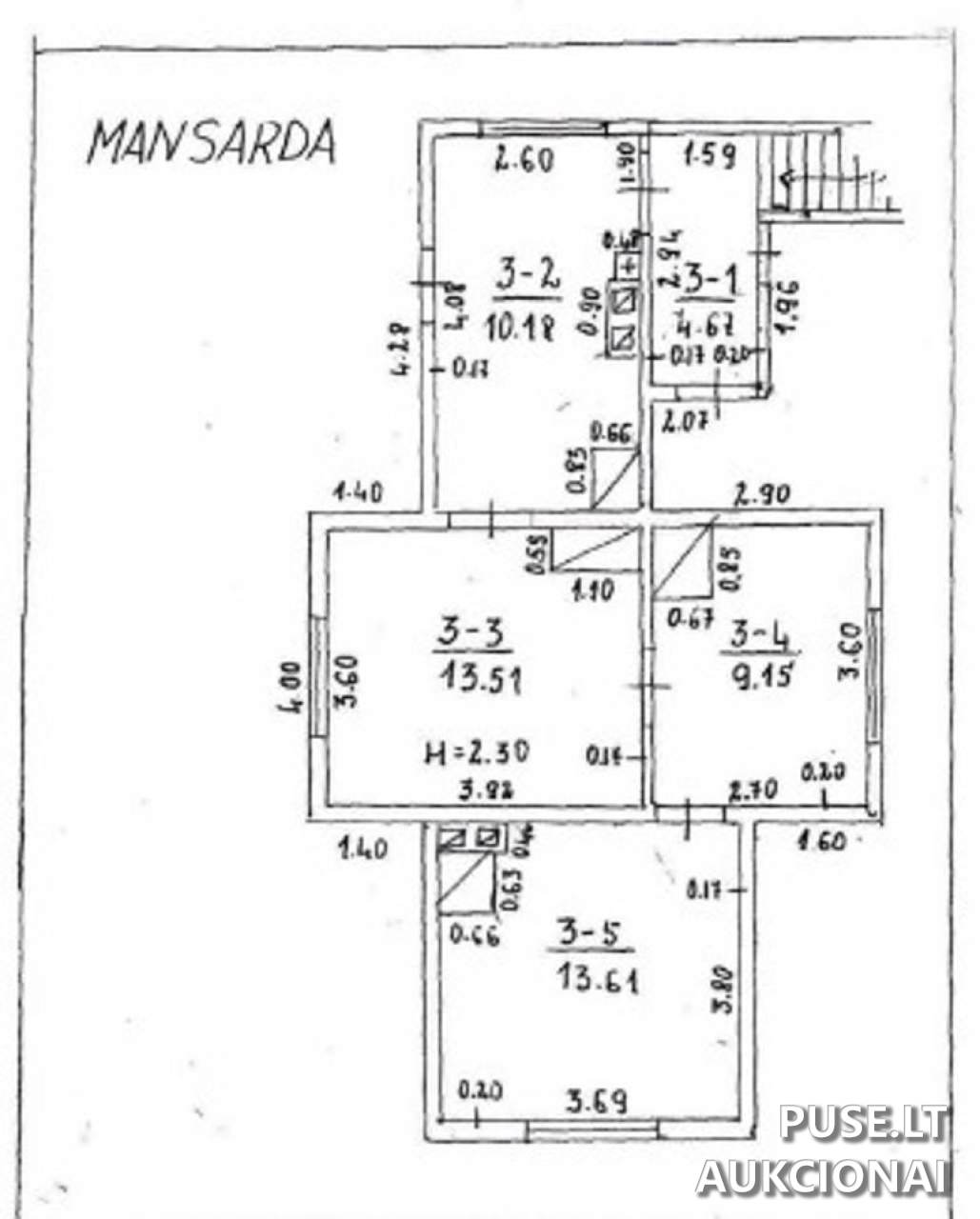 Parduodamos 54/100 dalies buto pradinė kaina aukcione yra 2286 EUR.