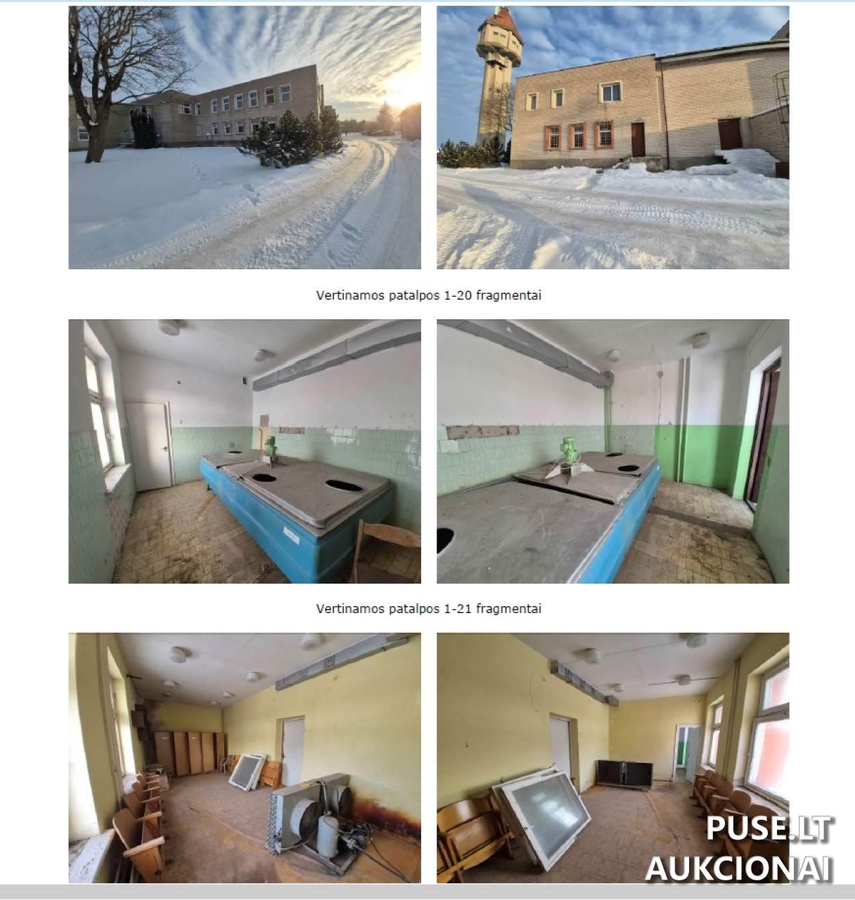 Pradinė aukciono kaina yra 3400 EUR. Parduodama 3753/67388 dalis, atitinkanti 37,53 kv. m. patalpų plotą kultūros namuose.