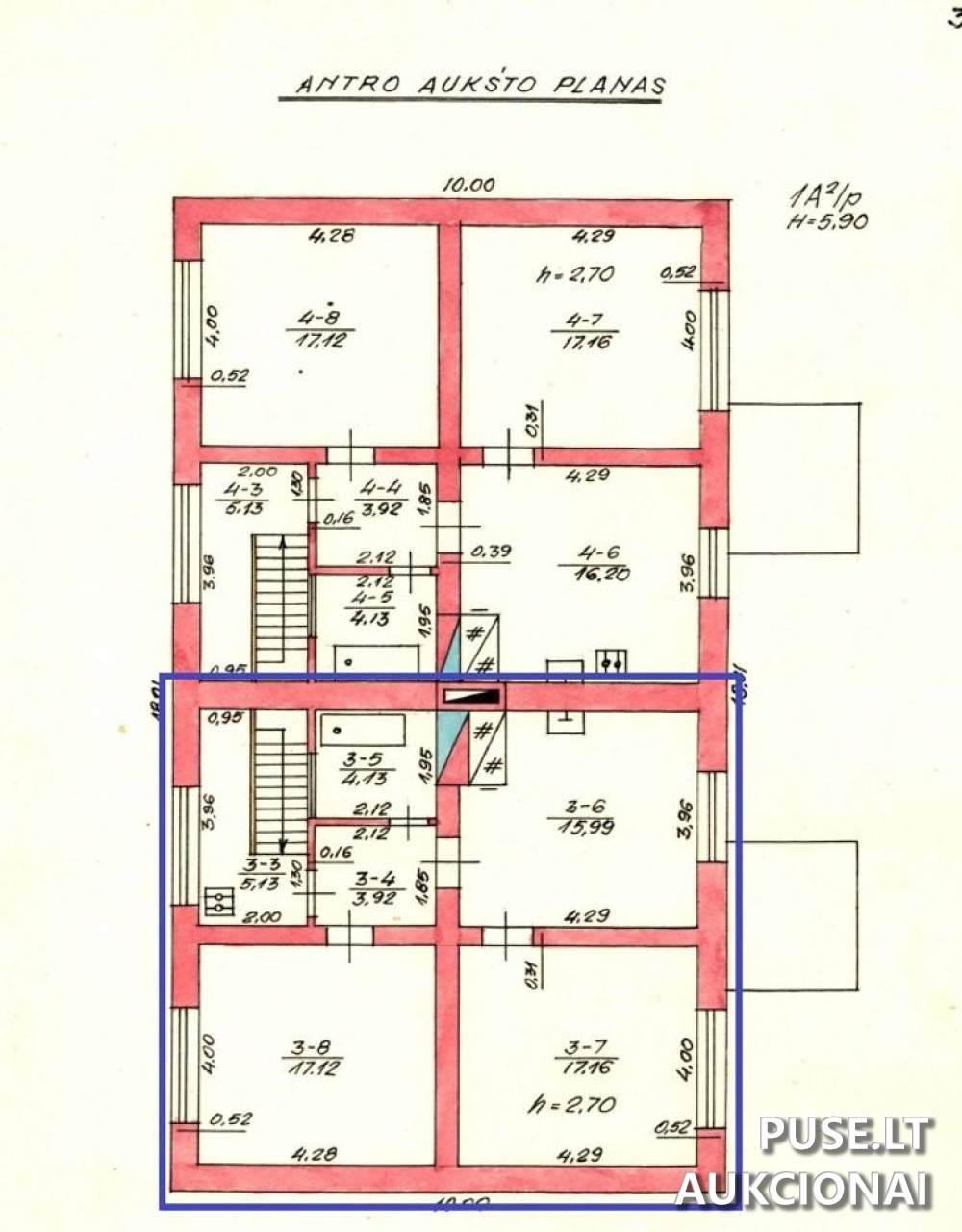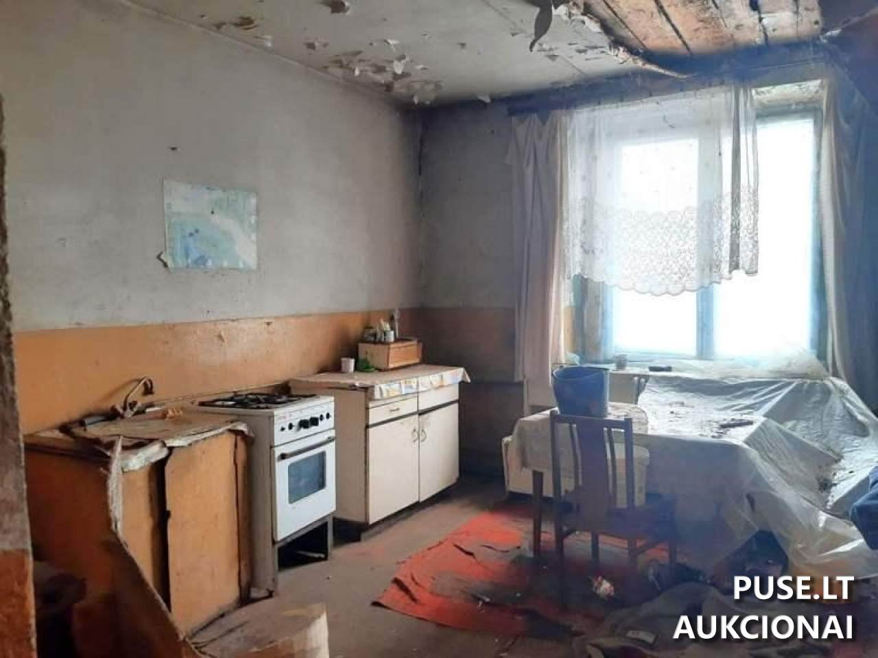Parduodama 1/2 dalis buto ir 1/2 dalis ūkinio pastatų. Pradinė kaina yra 2060 EUR.
