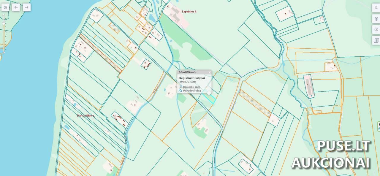 Unikalus daikto numeris yra 4400-0951-1686, o kadastro numeris – 4905/0001:388, priskirtas Darsūniškio kadastro vietovei. Parduodama visa 1/1 dalis nuosavybės.