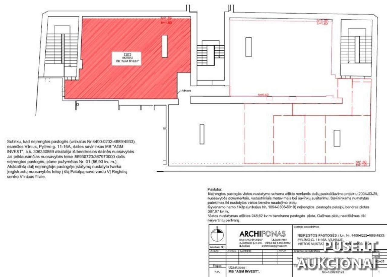 Objektas yra Kultūros paveldo teritorijose: Vilniaus senojo miesto ir priemiesčių archeologinė vietovė (kodas 25504) ir Vilniaus senamiestis (kodas 16073). Taigi, bet kokie statybos, tvarkybos, restauracijos, rekonstrukcijos, remonto darbai yra griežtai reglamentuojami Lietuvos Respublikos statybos ir Nekilnojamojo kultūros paveldo apsaugos įstatymais bei susijusiais aktais. Taip pat minima, kad viena dalis (Nr. 01, 86,93 kv. m) atidalinama iš bendraturčio MB "AGM INVEST".