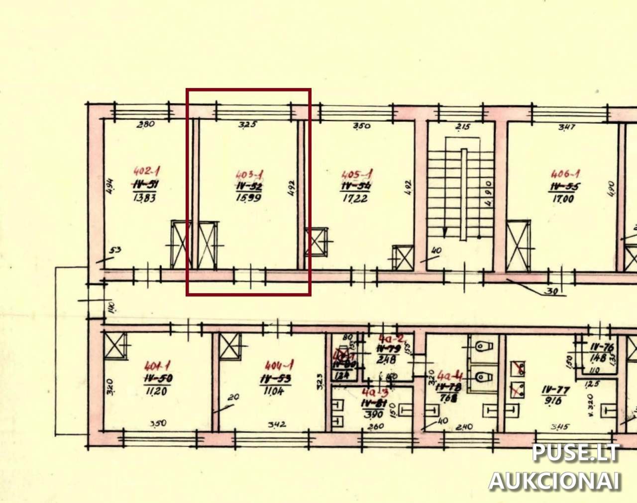 Parduodamas 1/1 dalies nedidelio buto ar patalpų pakartotinis aukcionas Lazdijų mieste, adresu M. Gustaičio g. 3-403. Pradinė kaina yra 4131 EUR. Bendras buto plotas sudaro 15.99 kv. m. Šis objektas turi bendro naudojimo patalpų (5,20 kv. m), kurios dalis taip pat priklauso parduodamai daliai. Nekilnojamasis turtas parduodamas esamos fizinės ir funkcinės būklės, pagal esamus kadastro duomenis. VĮ Turto bankas neįsipareigoja nustatyti aktualios būklės ar iškraustyti šiuo metu jame esančių daiktų.