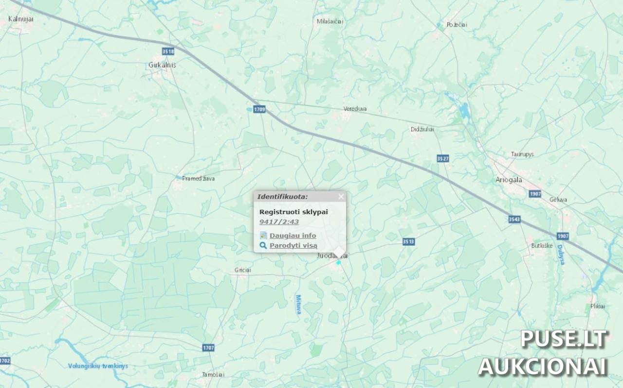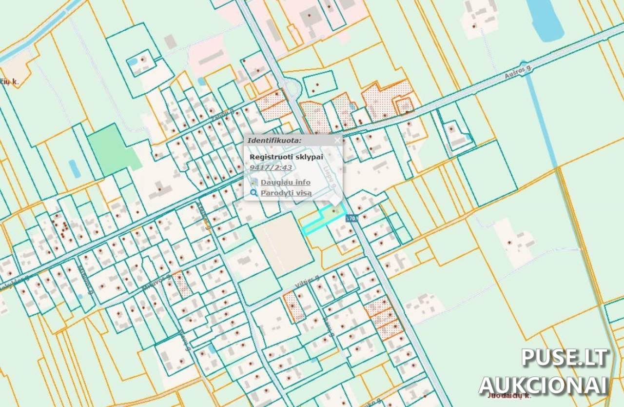 Žemės sklypas yra suformuotas atliekant kadastrinius matavimus. Unikalus turto numeris yra 9417-0002-0043, o kadastrinis numeris - 9417/0002:43. Parduodamas turtas yra areštuotas, taikomas disponavimo teisių apribojimas - Turto areštas.