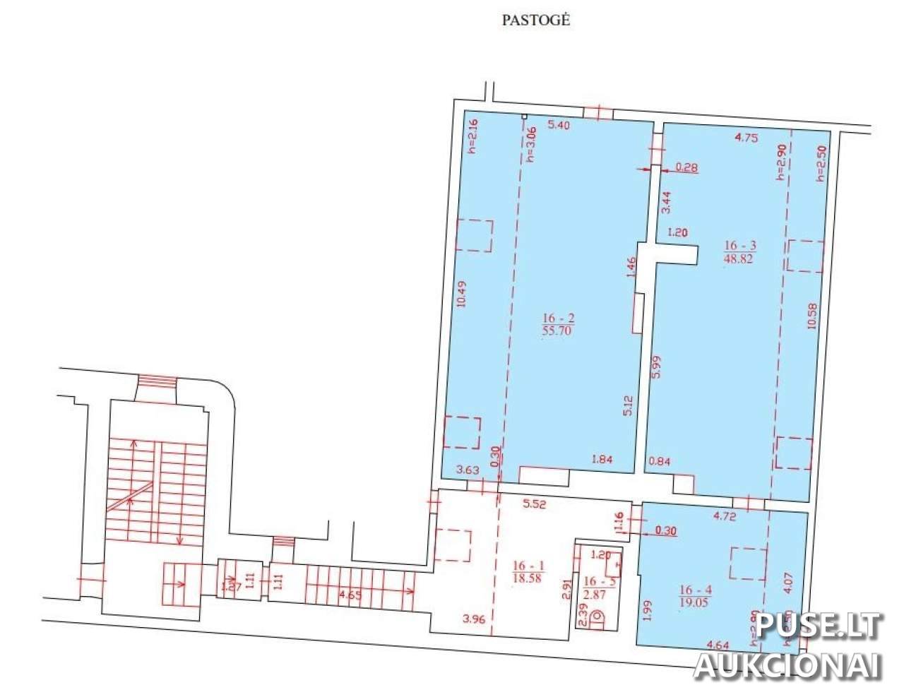 Bendras nuomojamas plotas sudaro 145,02 kv. m, iš kurių 123,57 kv. m yra administracinės patalpos su indeksais 16-2, 16-3, 16-4.