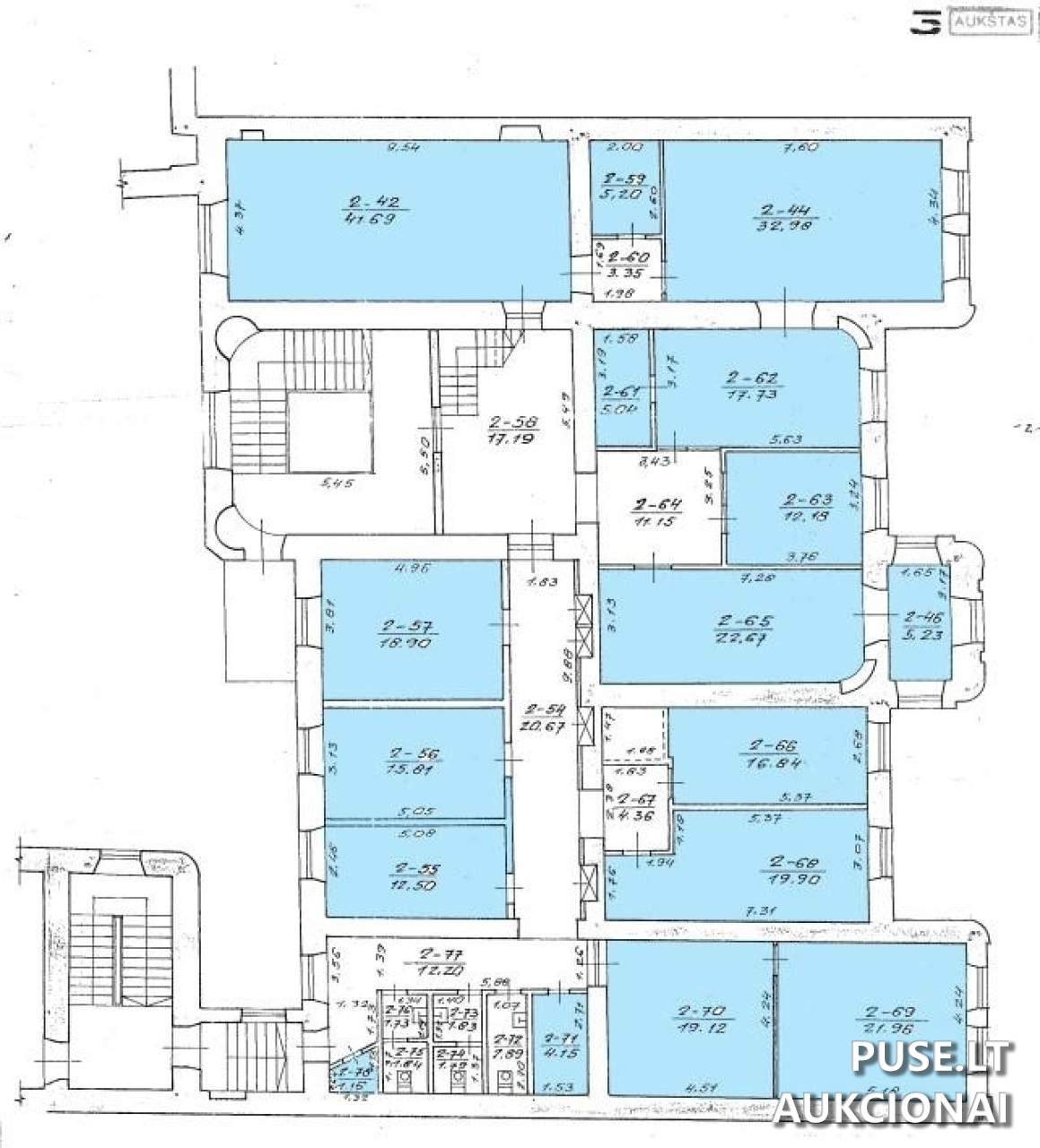 Ieškote plačių administracinių patalpų nuomai Vilniaus centre? Nuomojami ypač dideli administracinės paskirties patalpos Vilniaus miesto savivaldybėje, adresu Vilniaus g. 27. Šis objektas – tai pakartotinis nuomos konkursas, kurio pradinė nuomos kaina yra 0 EUR. Bendras nuomojamas plotas sudaro 423,89 kv. m., įskaitant bendro naudojimo patalpas. Patalpos yra išsidėsčiusios pastato 3 aukšte ir pastogėje. Nuomojami patalpų fragmentai, pažymėti indeksais: nuo 2-130 iki 2-132, 2-42, 2-44, 2-46, nuo 2-55 iki 2-57, 2-59, nuo 2-61 iki 2-63, 2-65, 2-66, nuo 2-68 iki 2-71, ir 2-78, kurių bendras plotas 333,15 kv. m., su bendro naudojimo patalpomis.