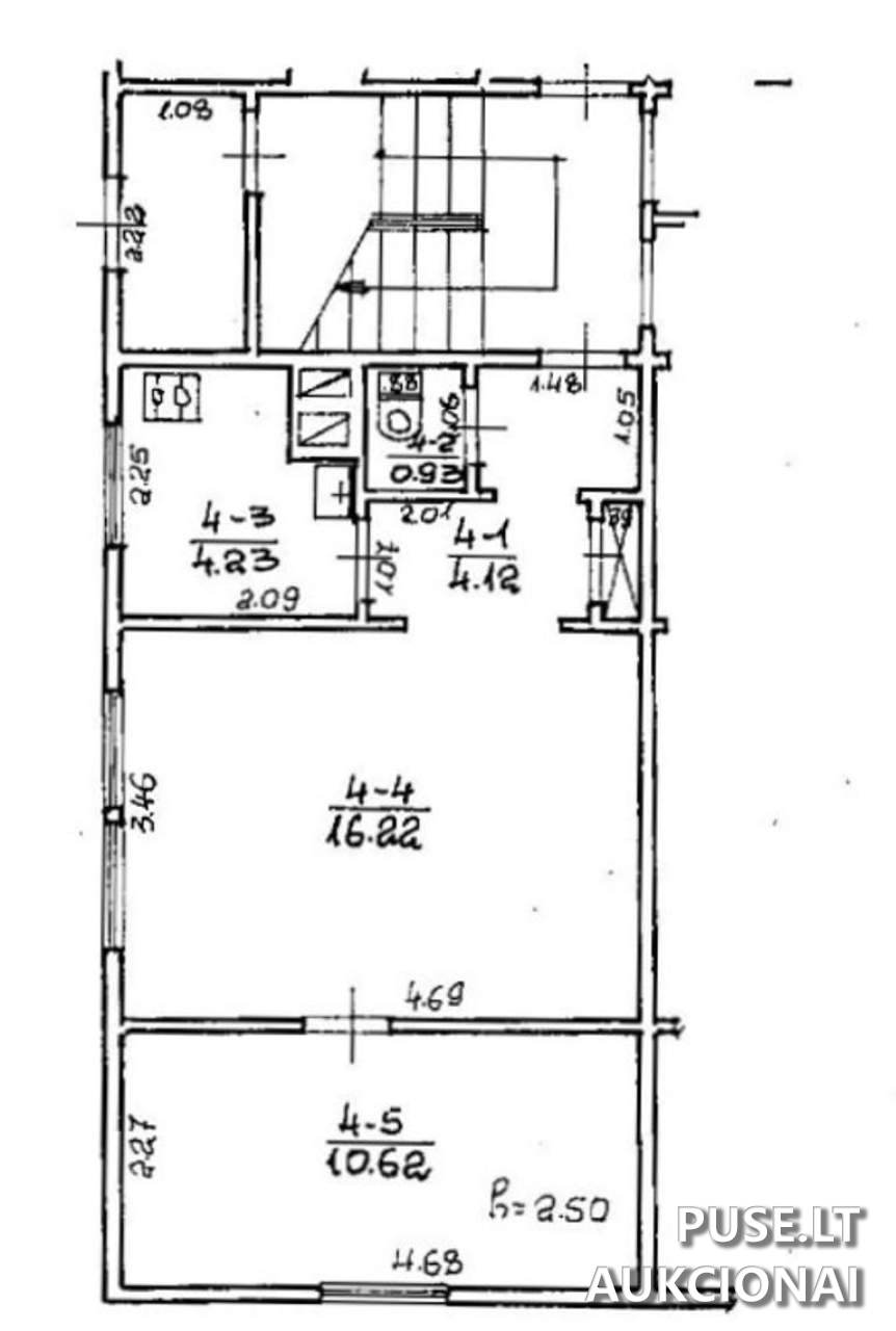 Pradinė kaina yra 838 EUR. Parduodama bendro ploto 36.12 kv. m butas su 5.90 kv. m sandėliu.