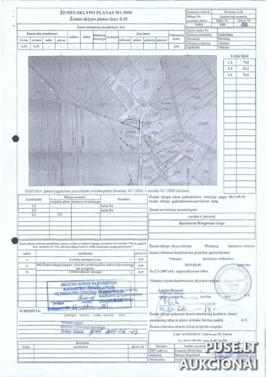 Parduodamas žemės ūkio ar miškų ūkio paskirties žemės sklypo dalies (1/3 dalies) vystymo potencialas Vilniaus rajono savivaldybėje, Sadūniškių kaimo vietovėje. Šio turto pradinė kaina varžytynėse yra 294 EUR. Unikalus numeris 4400-2410-0770, Kadastro numeris 4152/2300:192. Antstolių varžytynės yra vykstančios, o pardavimas vykdomas areštuoto turto pagrindu.
