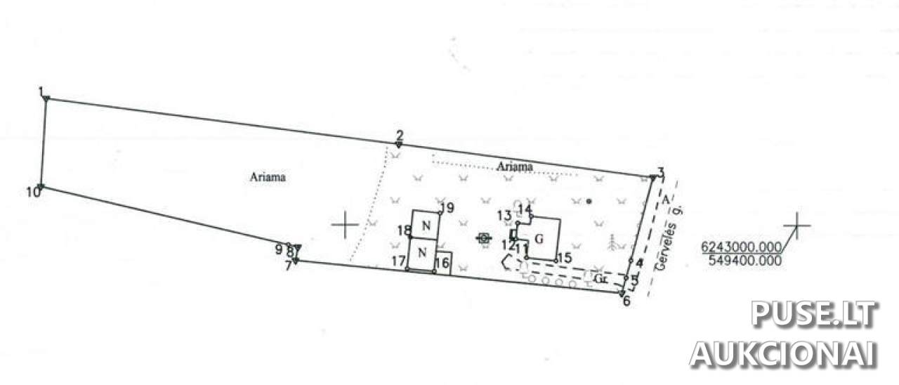 Aukcione parduodama 1/2 dalis gyvenamojo namo (bendra ploto 60.18 kv. m) su priklausiniais ir žemės sklypu Biržų rajono savivaldybėje, Pagervės kaime, Gervelės g. 6. Šis nekilnojamasis turtas apima ir 1/2 dalį ūkinio pastato (užstatytas plotas 42.00 kv. m, unikalus Nr. 3697-2017-4021), 1/2 dalį kito ūkinio pastato (užstatytas plotas 36.00 kv. m, unikalus Nr. 3697-2017-4032) bei 1/2 dalį šulinio (unikalus Nr. 4400-6806-2355). Taip pat parduodama 16/32 dalys (faktiškai 1/2 dalis) 0.3356 ha žemės sklypo, esančio toje pačioje vietoje, Pagervės k., Gervelės g. 6, Parovėjos seniūnijoje. Turto unikalus pagrindinio objekto numeris yra 3697-2017-4010.
